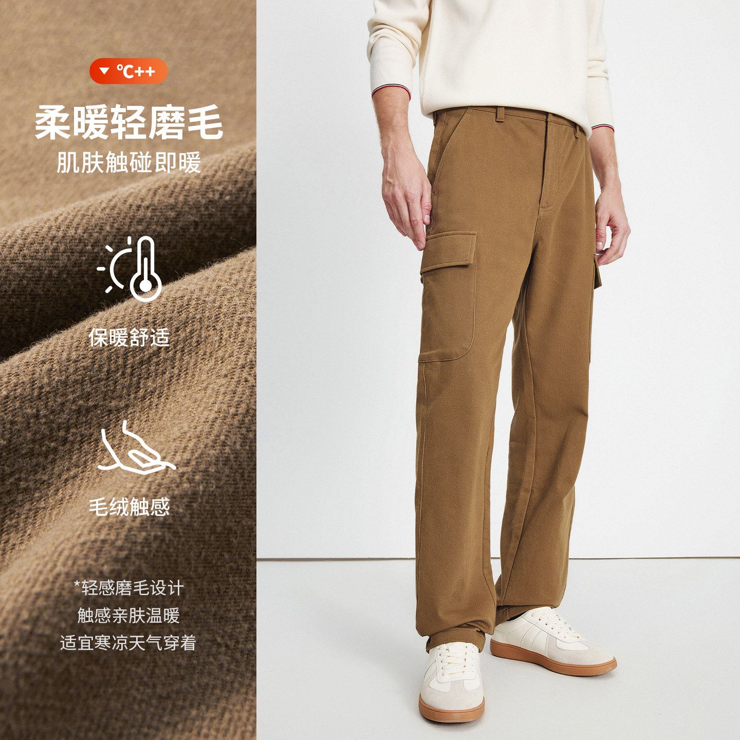 Navigare意大利小帆船卡其色工装休闲裤男25秋冬新品磨毛直筒长裤