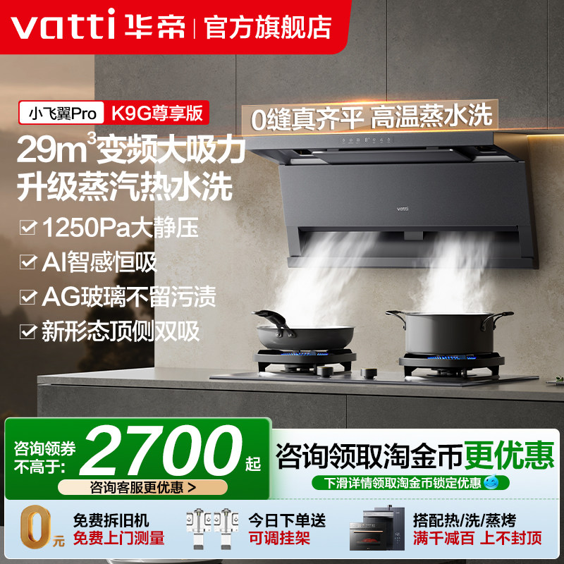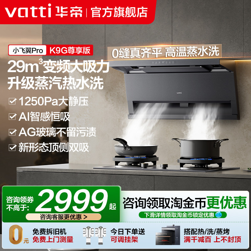 [小飞翼Pro]华帝油烟机K9/K9G顶侧双吸烟机自动洗家用厨房抽烟机