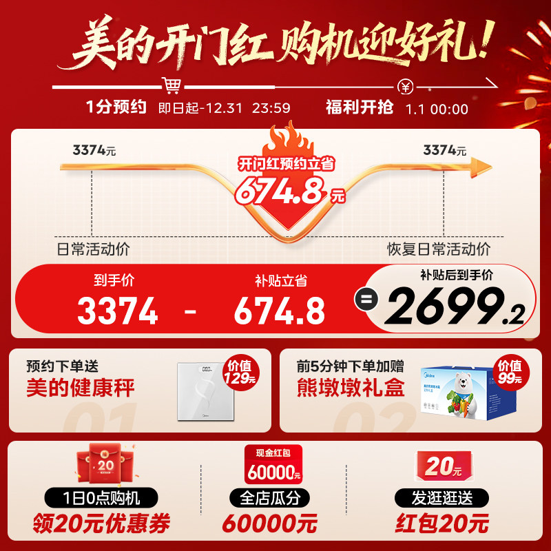 美的283三开门电冰箱一级能效家用变频风冷无霜小型超薄官方租房
