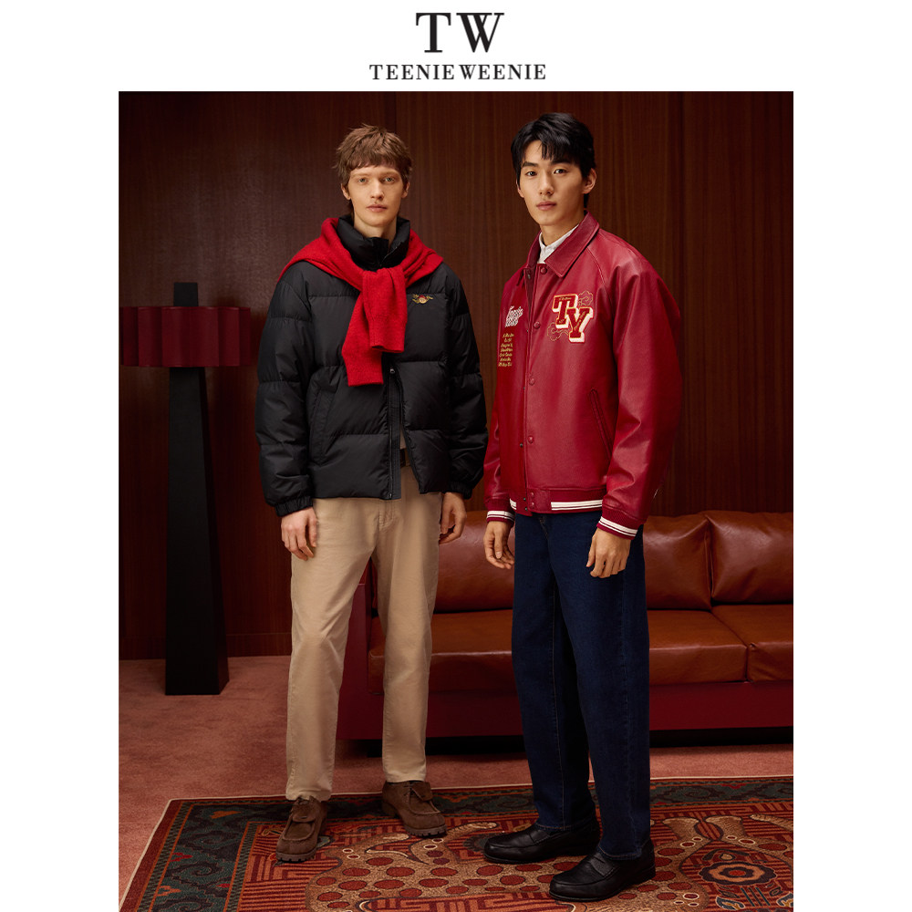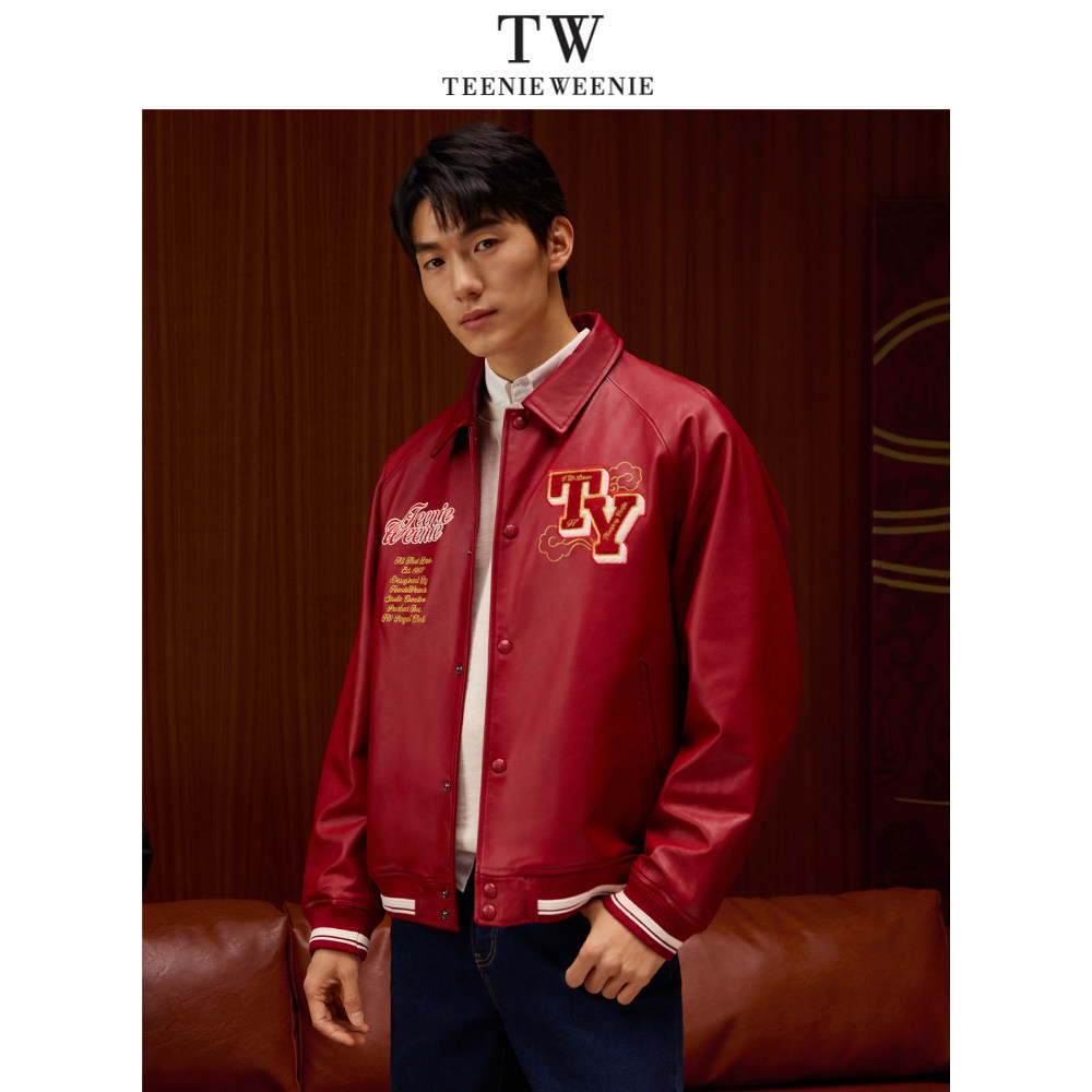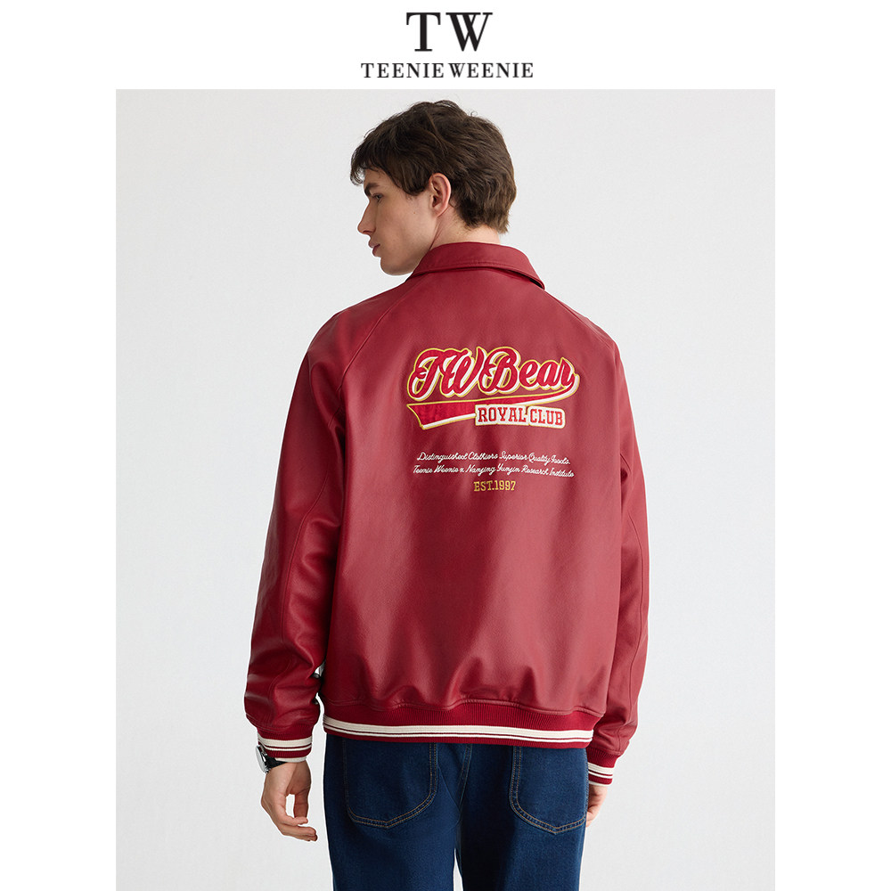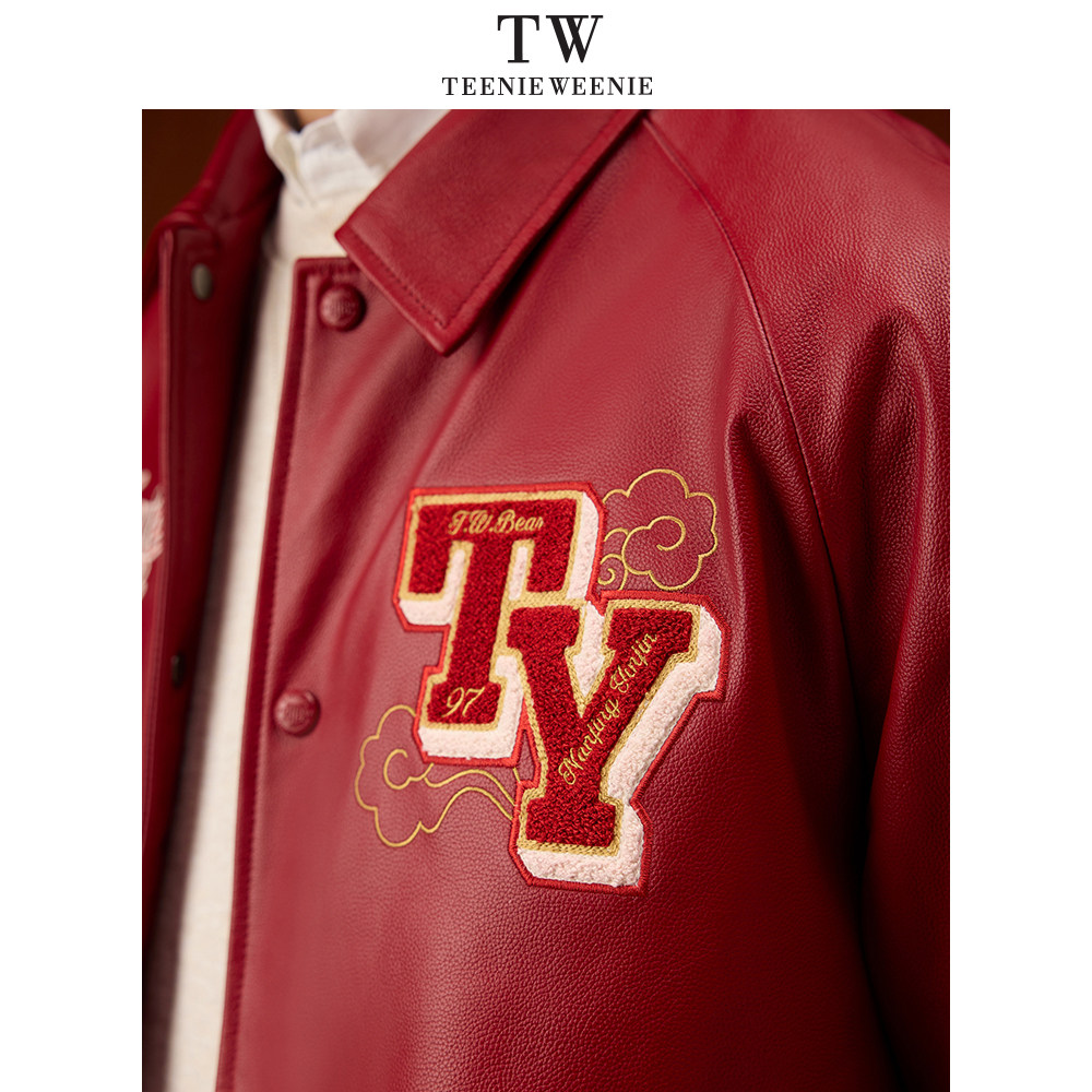 TeenieWeenie小熊男装皮衣2025春季新款时尚云彩绣花潮流外套男