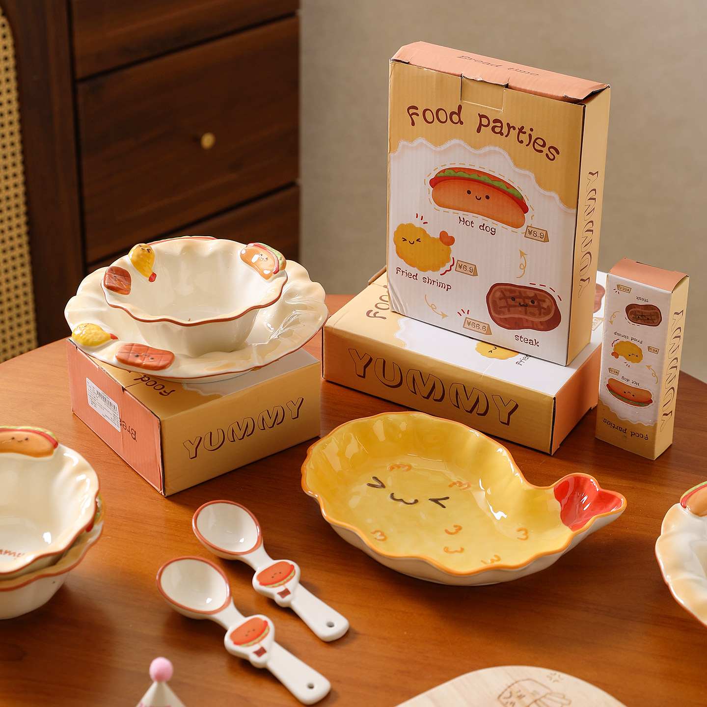 舍里可爱陶瓷米饭碗家用卡通餐具套装创意碗盘碟子面碗沙拉碗深盘