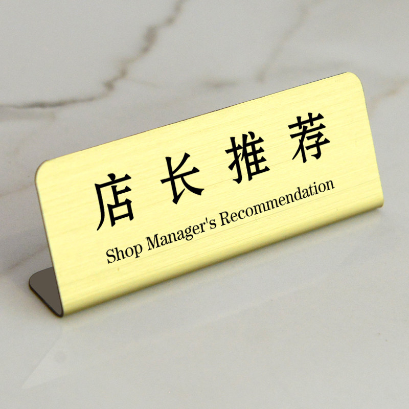 开业限定福利款银色不锈钢店长推荐人气款金色小标签立牌展示牌