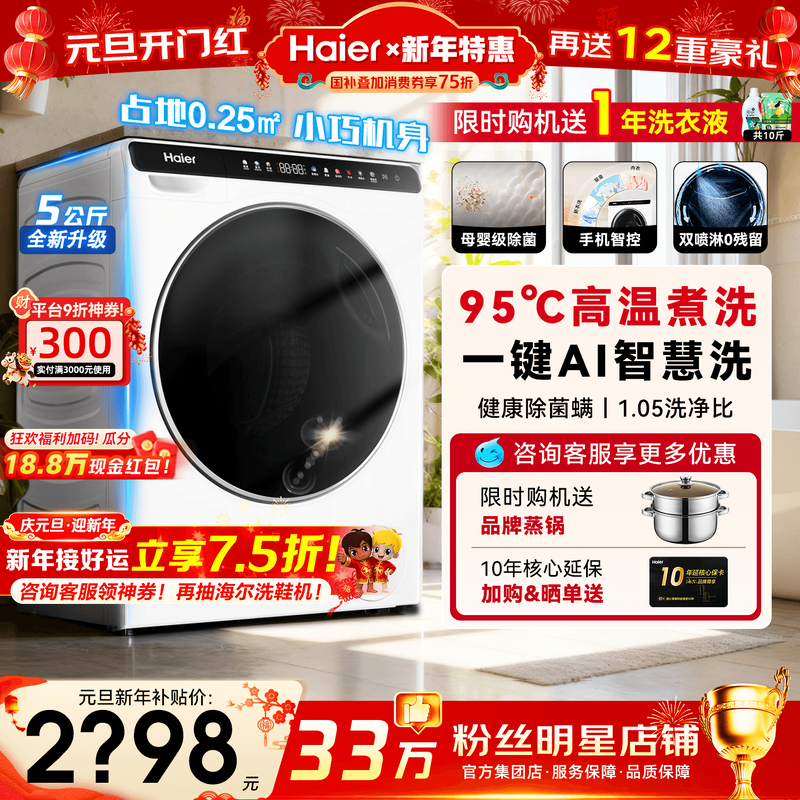 [政府补贴]海尔迷你洗衣机家用全自动滚筒3kg5公斤儿童除菌旗舰店