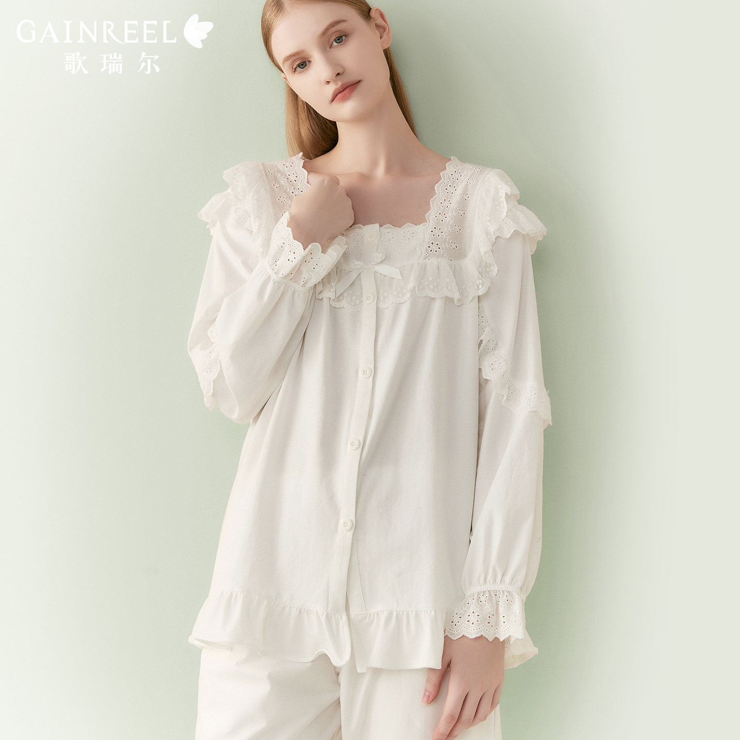 歌瑞尔超柔软棉质家居服女款白色睡衣女柔软亲肤长袖薄款套装
