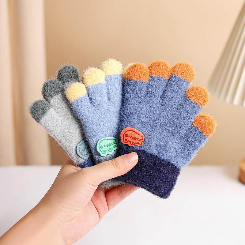 2025冬季新款保暖儿童手套小恐龙防滑五指户外运动防寒手套宝宝冬