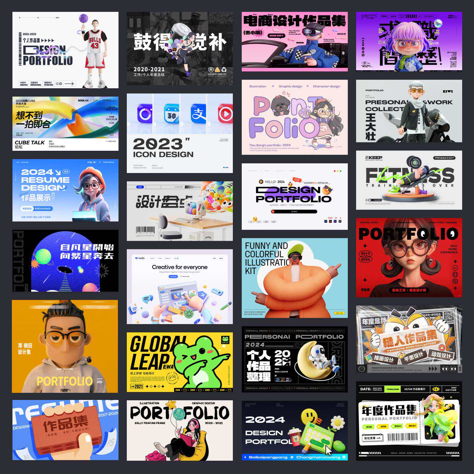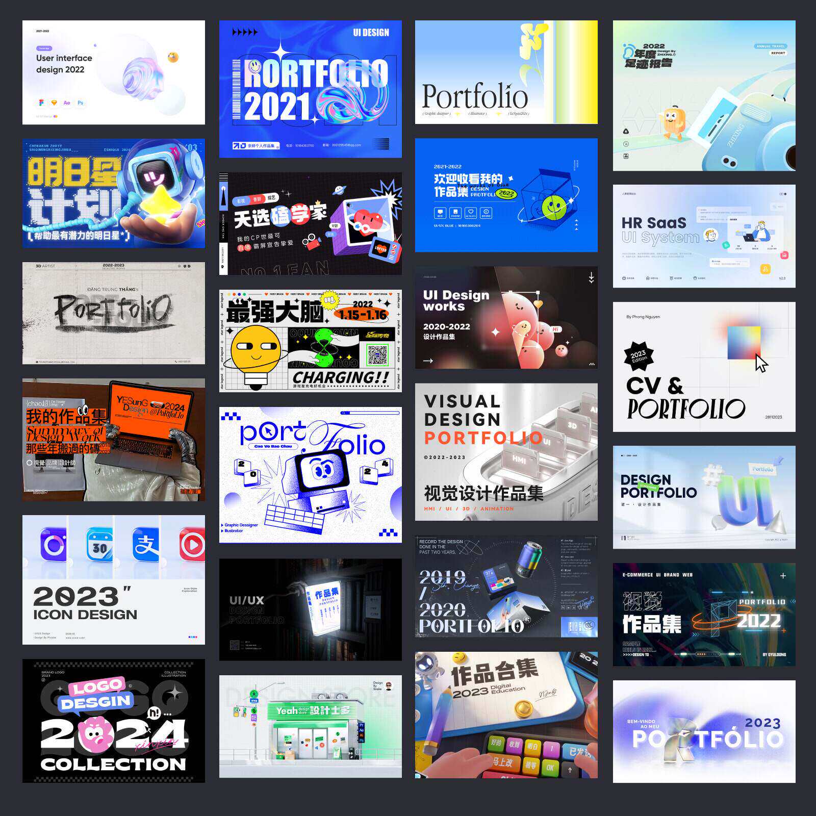 500+视觉UI平面插画电商求职面试设计作品集封面JPG参考图片G230