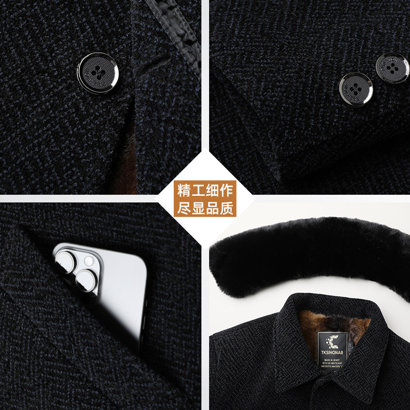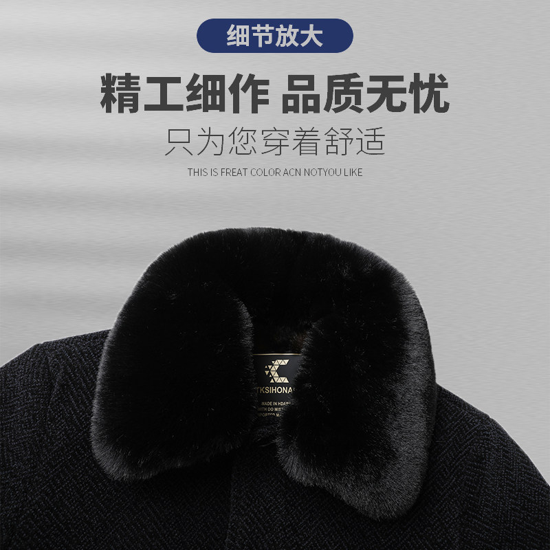爸爸冬装毛呢外套加绒加厚保暖棉服绵羊毛中老年人棉衣男爷爷棉袄