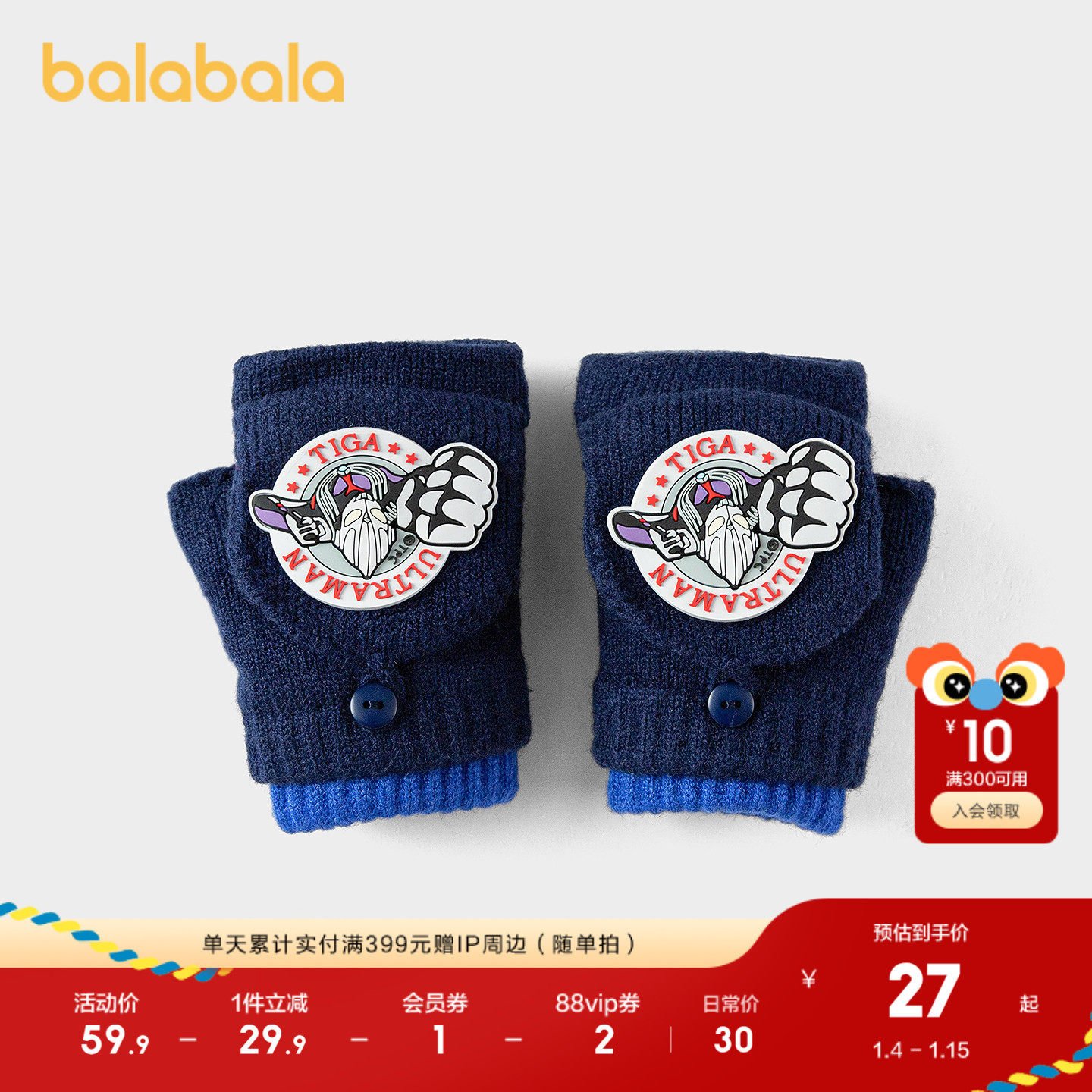 巴拉巴拉balaOne儿童手套男童女童半指翻盖手套保暖2025新款舒适
