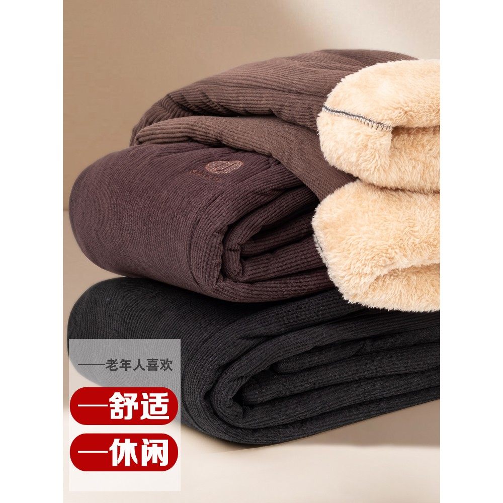 中老年女裤冬季加绒保暖棉裤加厚妈妈裤子奶奶裤外穿老年人灯芯绒