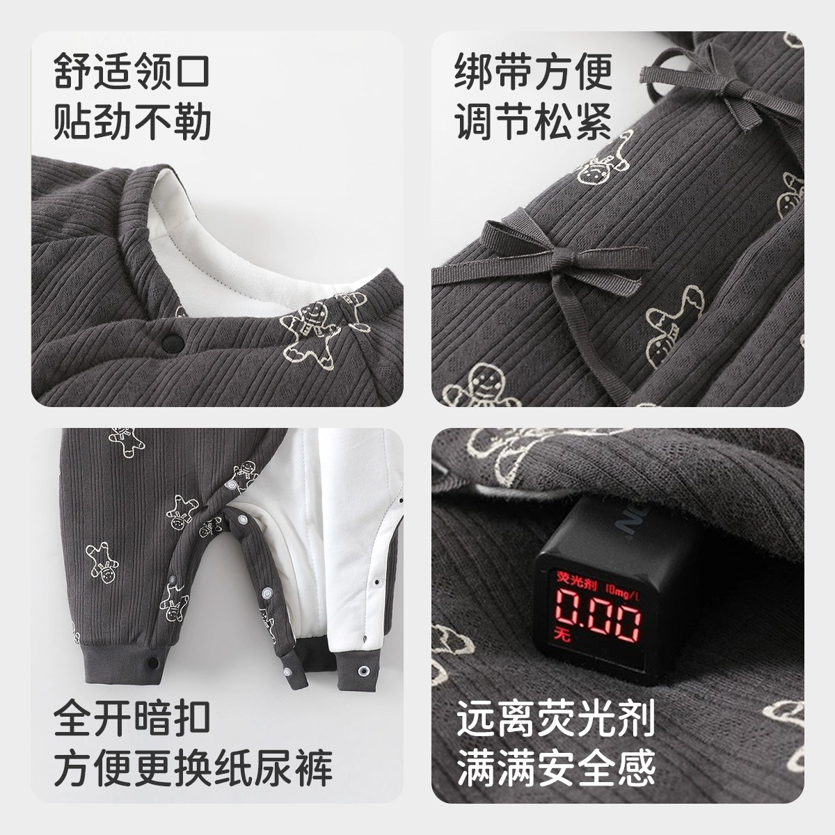 婧麒新生婴幼儿衣服秋冬保暖夹棉连体衣小月龄宝宝无骨外出哈衣秋