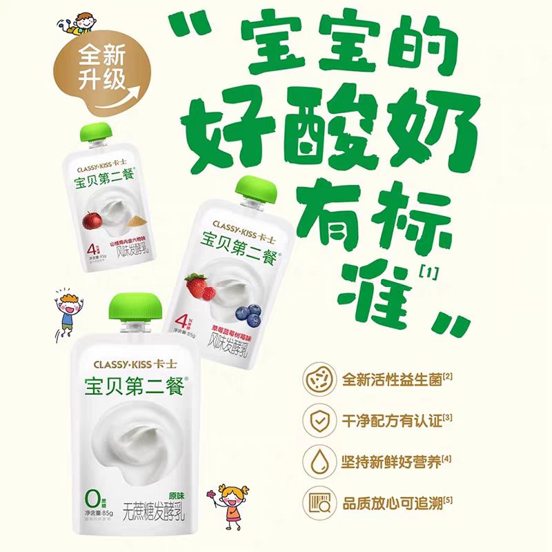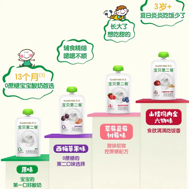 卡士宝贝第二餐85g*18袋无蔗糖无添加剂高钙儿童酸奶