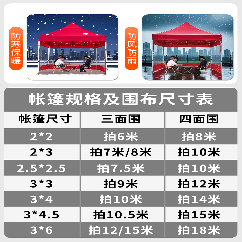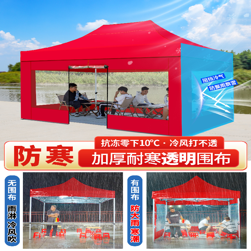 户外加厚防寒挡风四角遮阳雨棚摆摊用四脚伞帐篷透明围布防雨围挡
