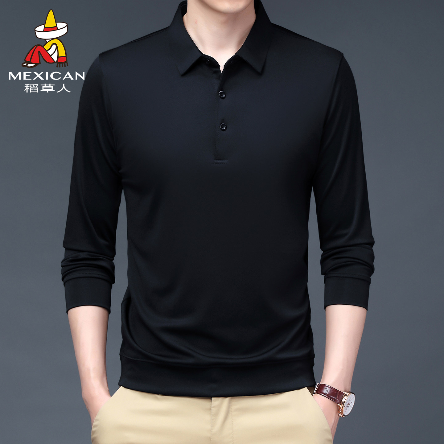稻草人2025新款中年男士t恤薄款休闲春秋季打底POLO衫爸爸装上衣J