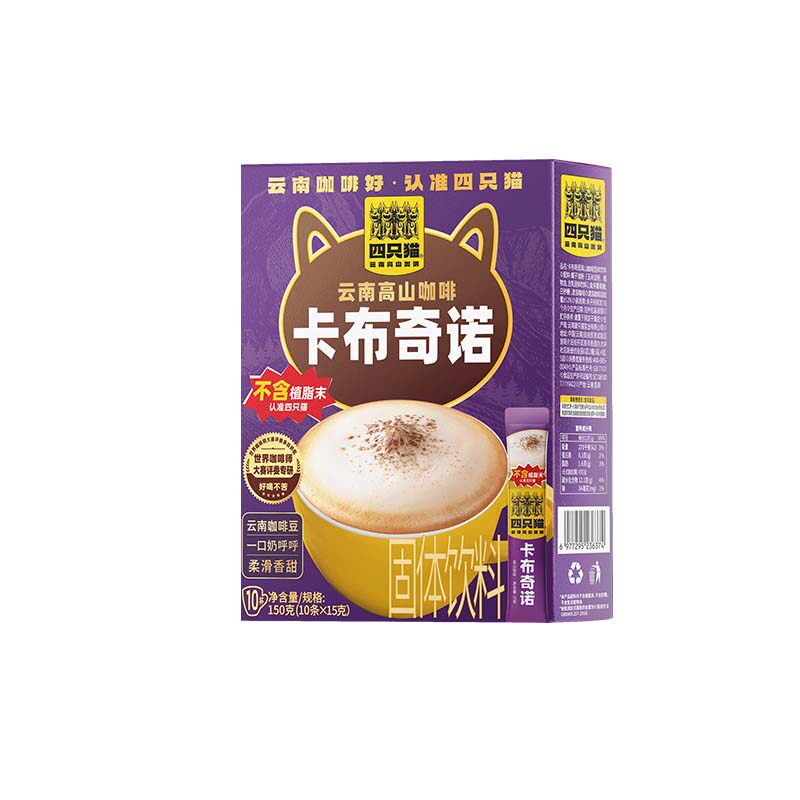 四只猫 云南高山双倍浓郁卡布奇诺云南速溶三合一速溶咖啡粉10条