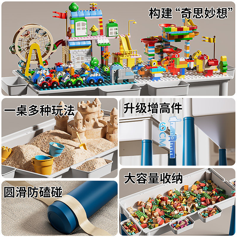 儿童大颗粒多功能积木桌子拼装益智力玩具桌宝宝拼图男孩生日礼物