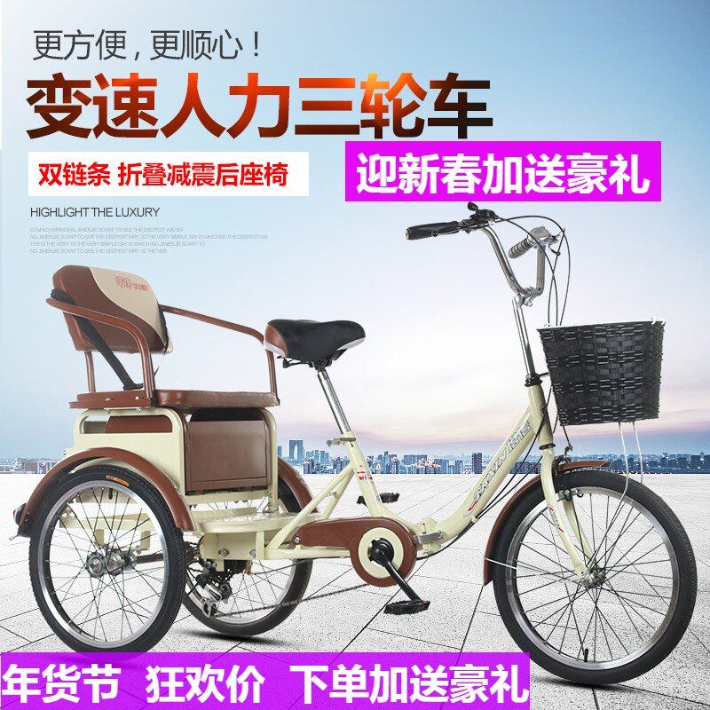 塔信老年三轮车脚踏脚蹬变速三轮车脚踩三轮车脚踏成人车接送小孩