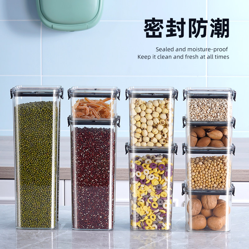 密封罐食品级储存收纳盒透明塑料厨房香料豆子坚果五谷杂粮储物罐