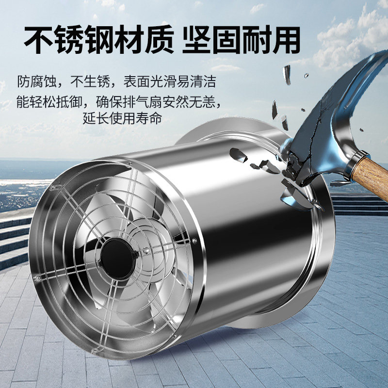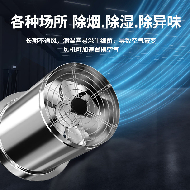 圆筒不锈钢嵌入式排气扇商用厨房油烟管道工业高速大吸强力抽风机