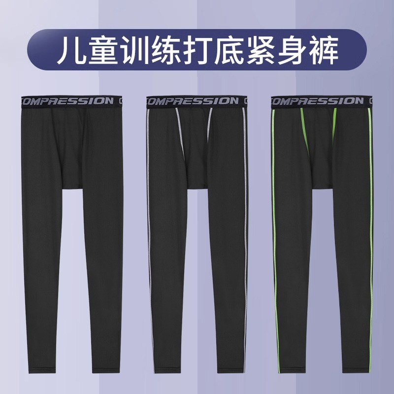 儿童篮球训练男童足球打底裤紧身长裤跑步服运动速干衣秋冬季加绒