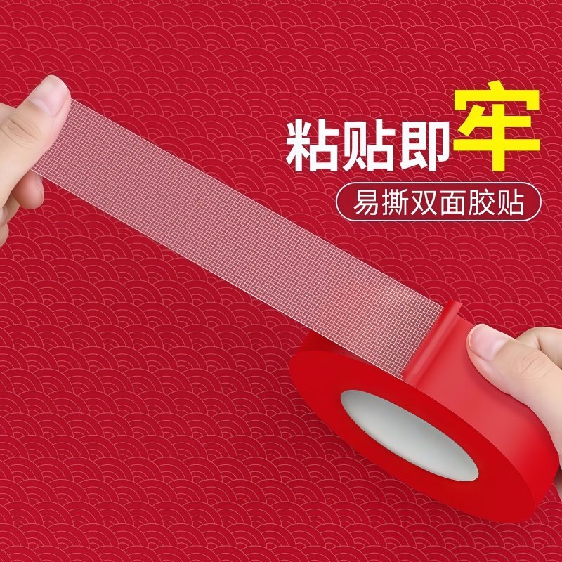 贴春联婚庆展会庆布置固定布基双面胶带超强粘力不留痕网格地毯神器耐高温