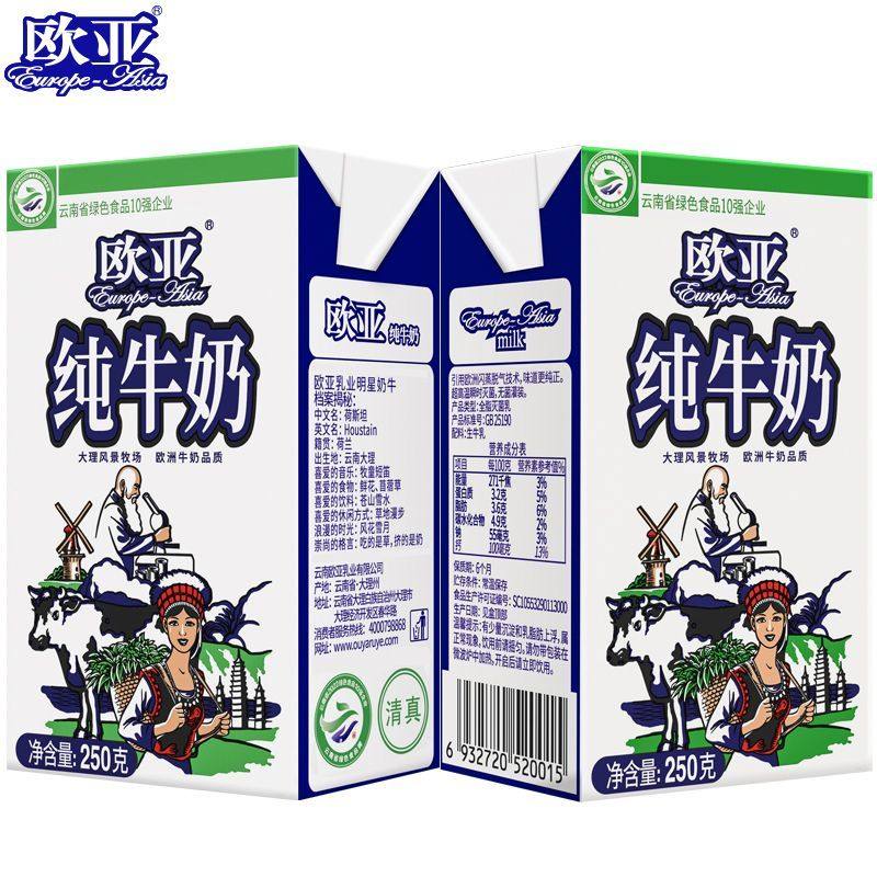 欧亚纯牛奶官方旗舰店高原全脂250g*24盒整箱云南特产学生