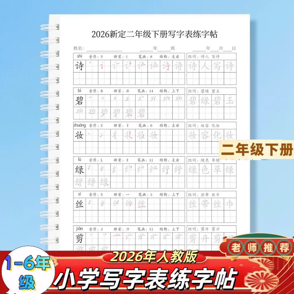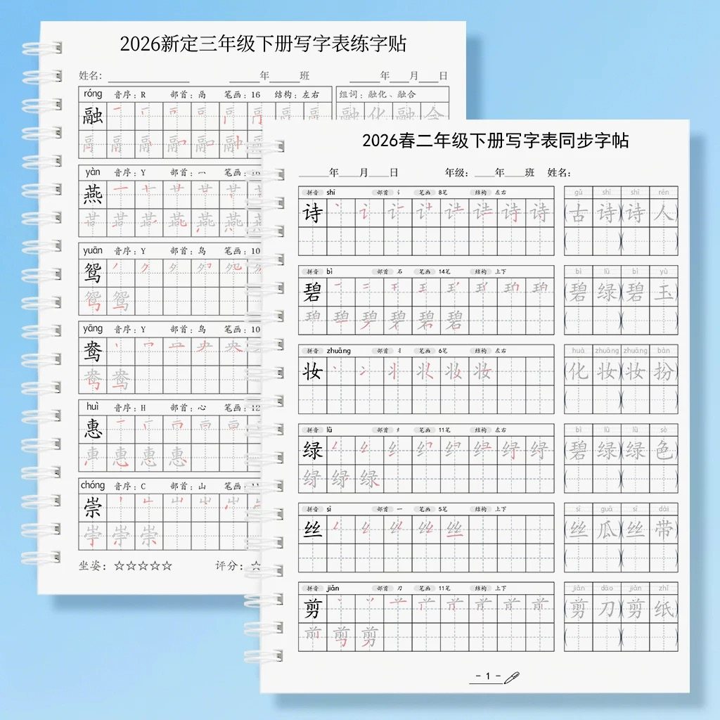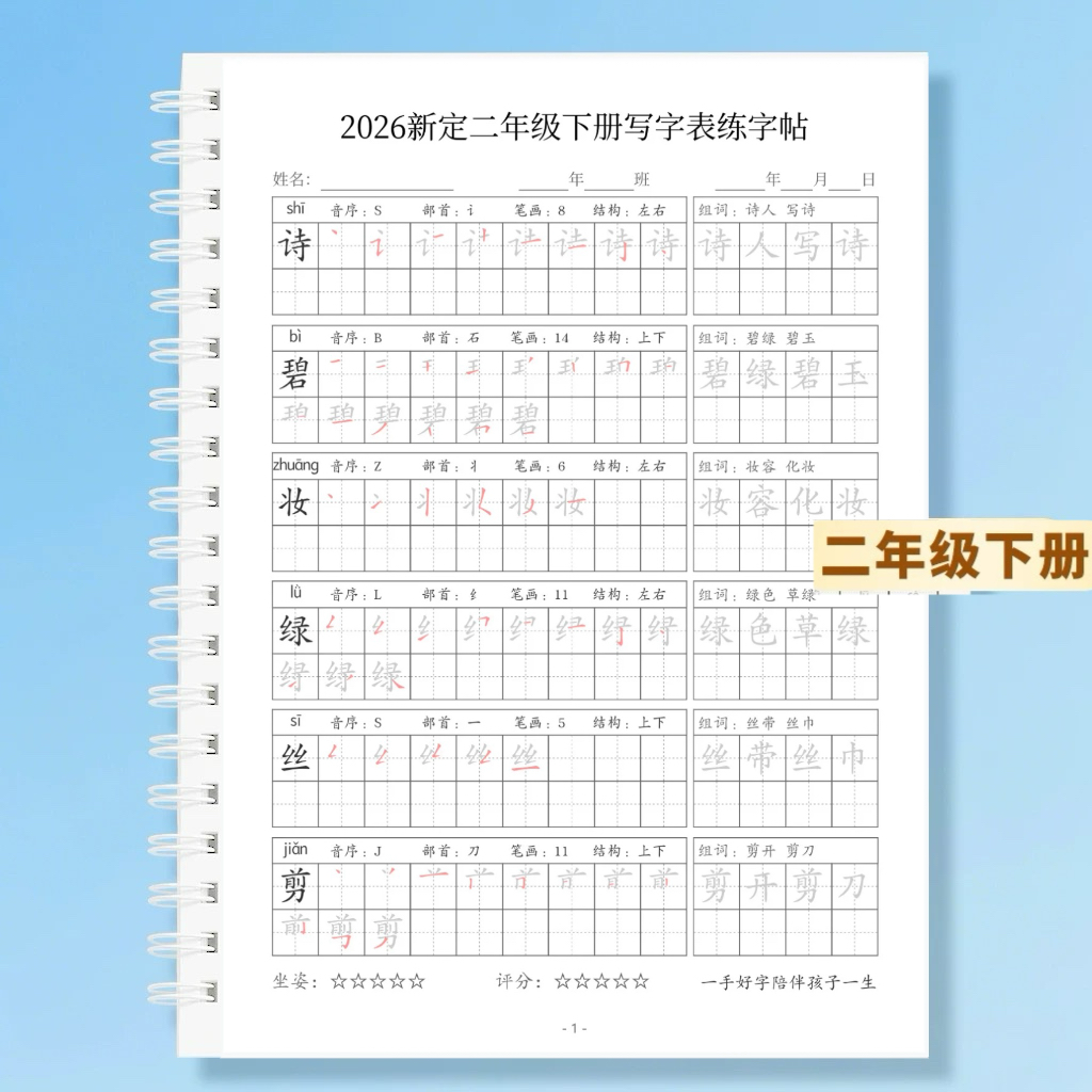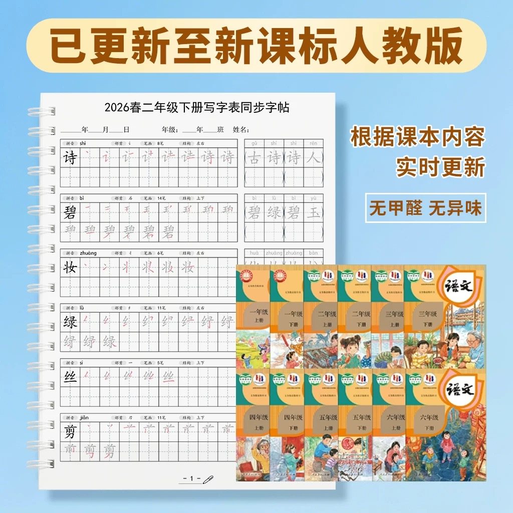 2026春人教版二年级上下册写字表生字123456年级上下册同步练字帖