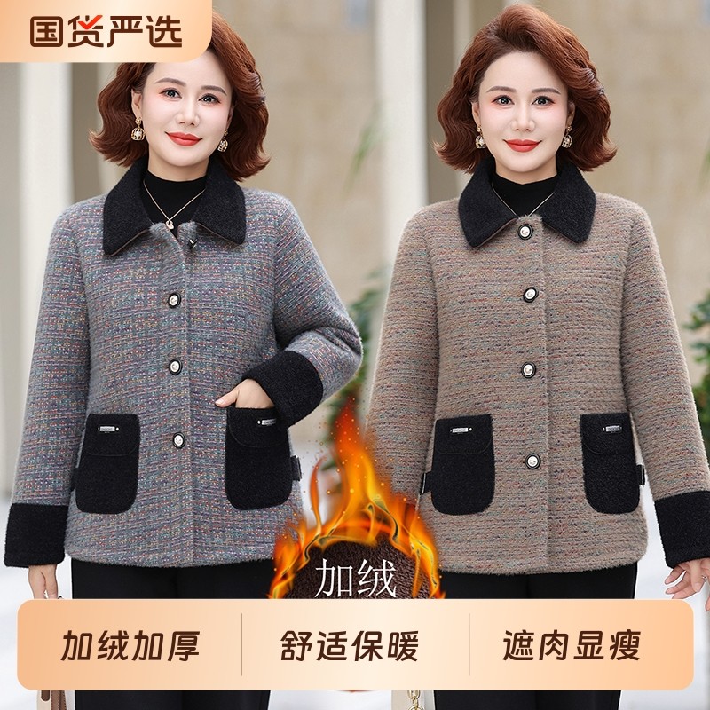 妈妈冬装加绒加厚水貂绒外套2025新款中老年女装洋气呢子大衣短款