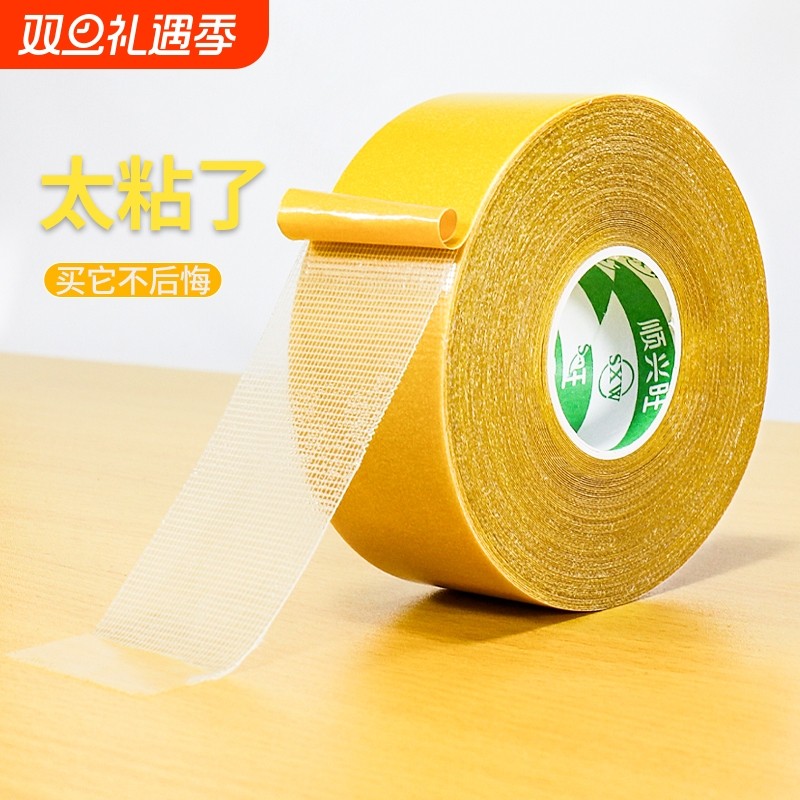 布基双面胶带高粘度婚庆红地毯拼接地垫防滑垫地板革固定超粘胶布宽两面防水不留痕墙纸气球强力网格双面胶贴