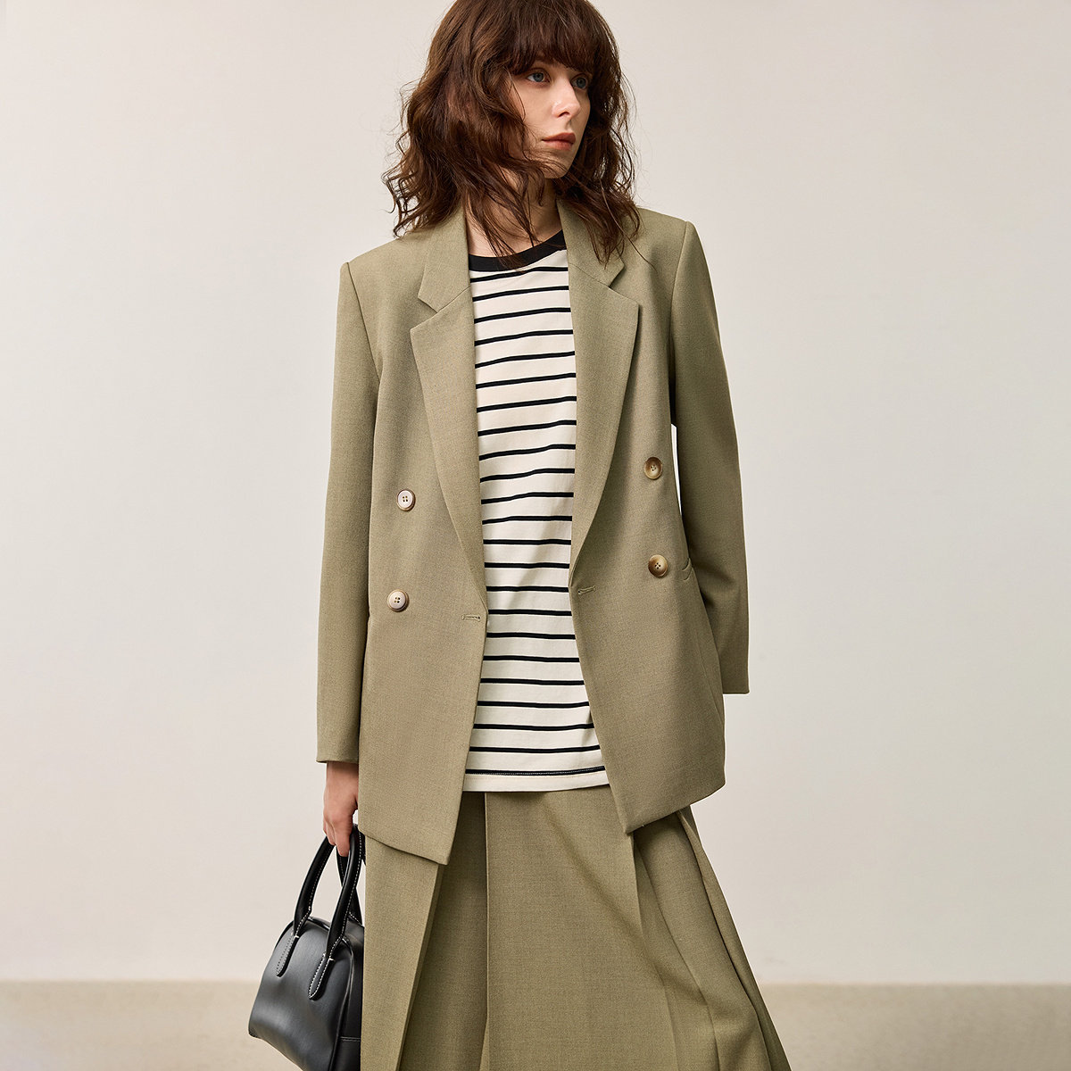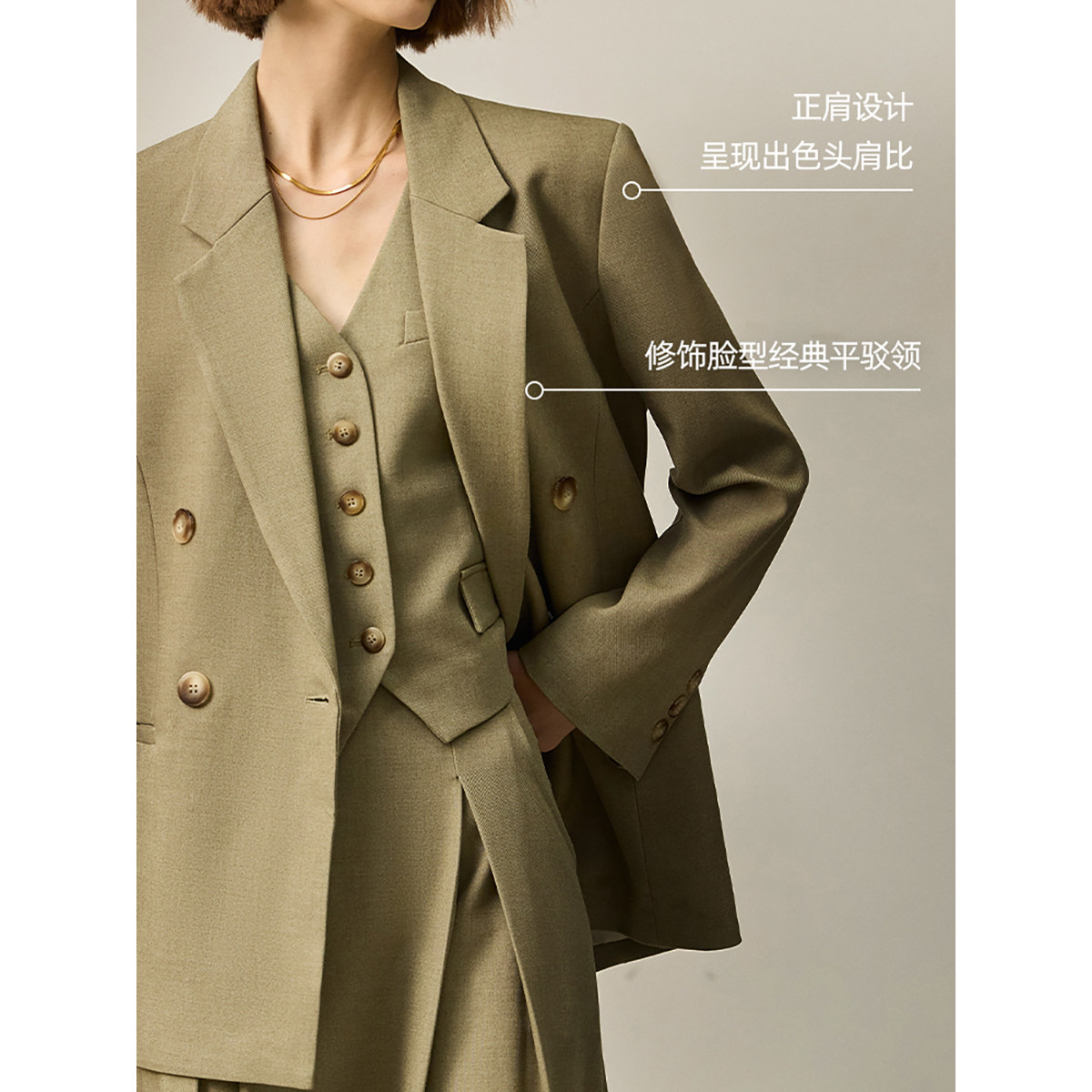 COCOBELLA老钱风精纺花纱羊毛正肩西装女春气质休闲外套SI7029