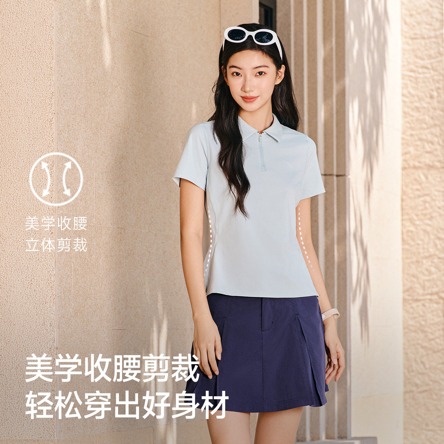 安踏速干POLO丨公主线正肩半拉链短袖女夏季新款防晒T恤透气上衣