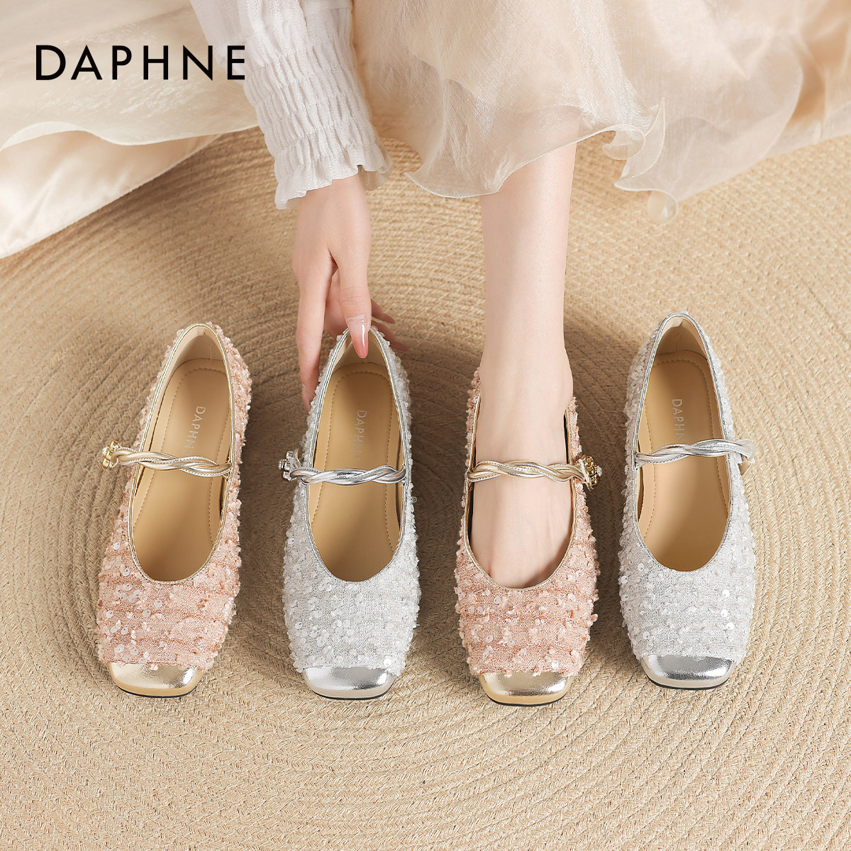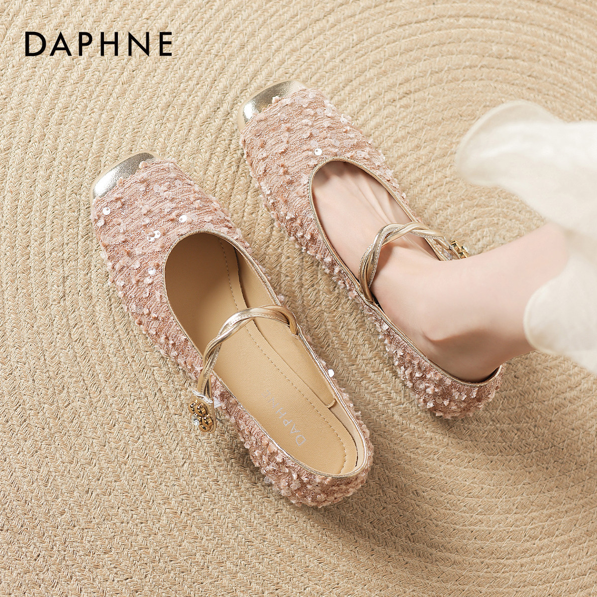 达芙妮粉色单鞋秋季小香风平底鞋法式玛丽珍女鞋子2026新款豆豆鞋