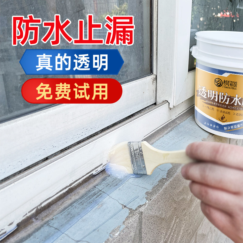 透明防水胶卫生间免砸砖窗台内外墙渗水屋顶防水涂料补漏防漏材料