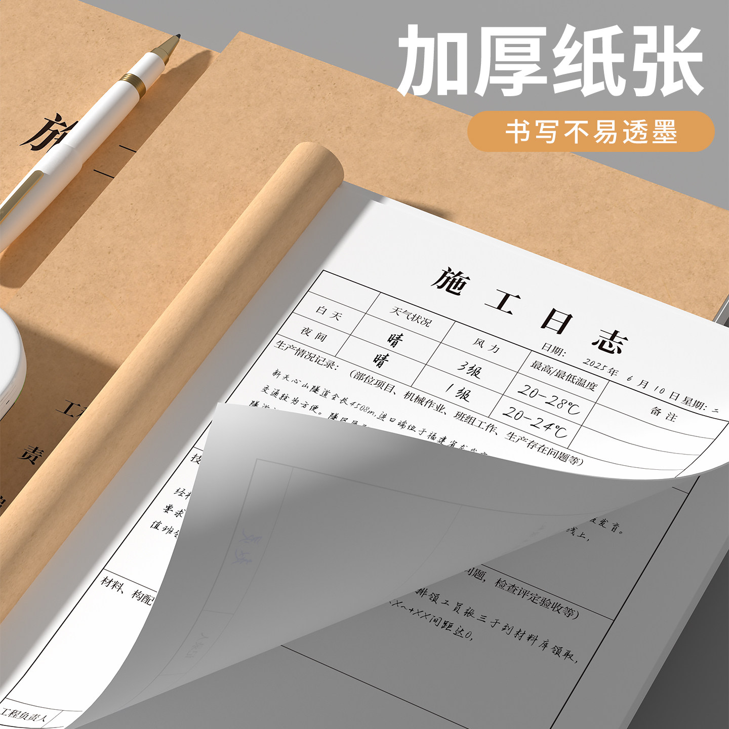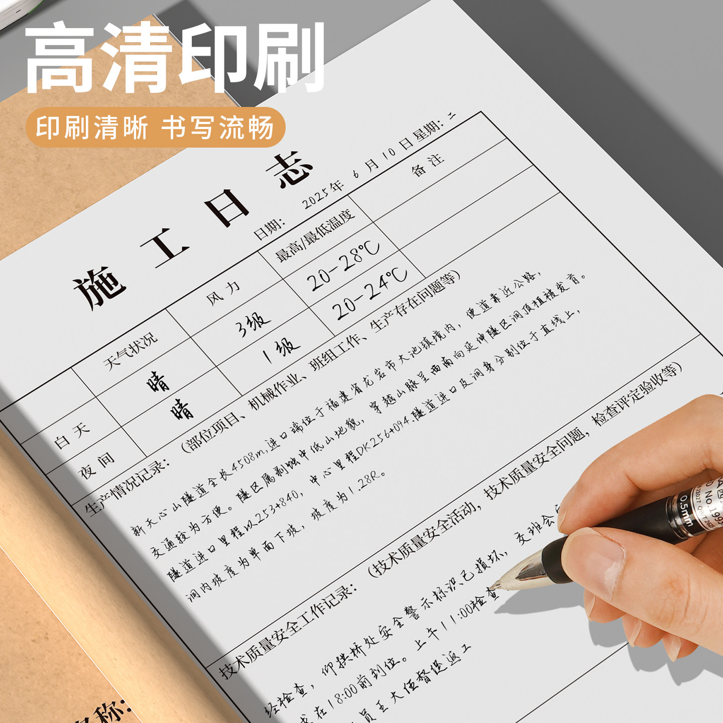 A4施工日志记录本建筑工程监理日志16k通用工作地进度装修手册加厚单面双面2025年新版安全日志本可定制