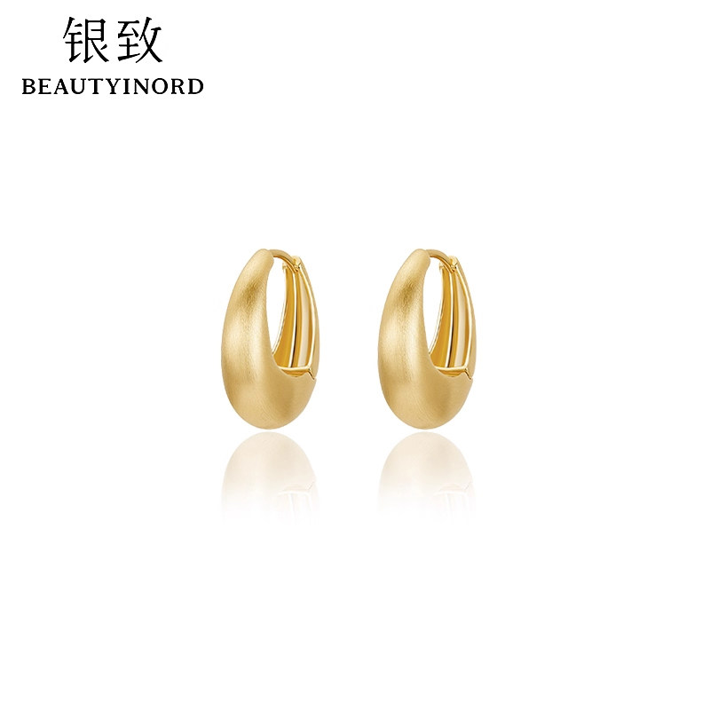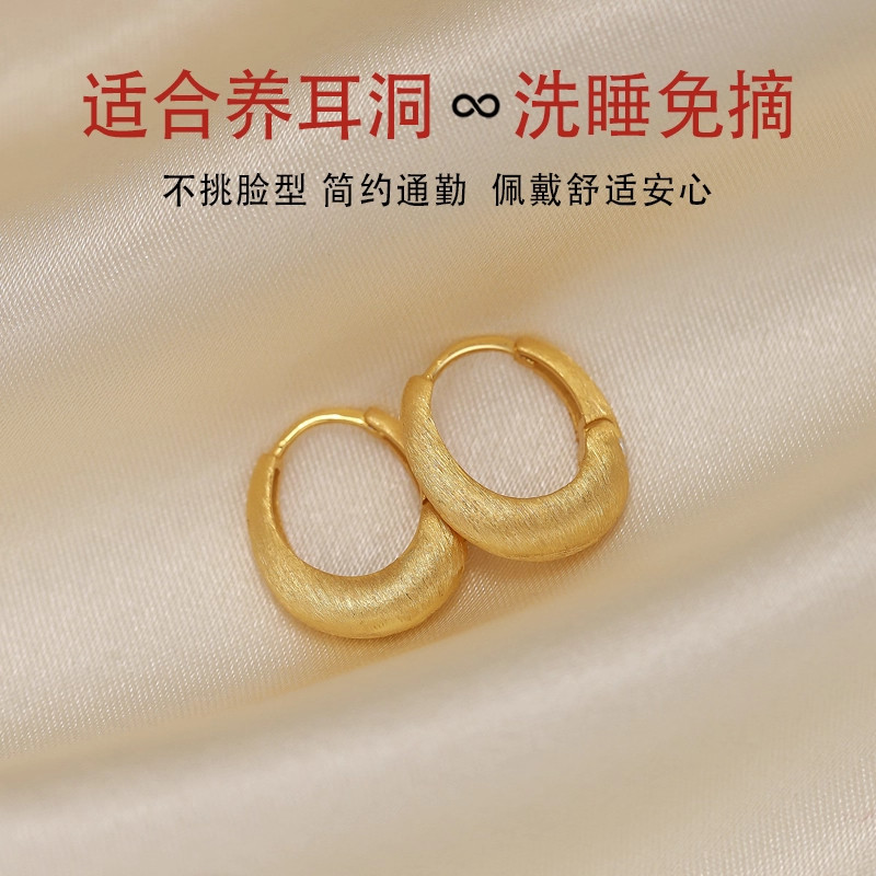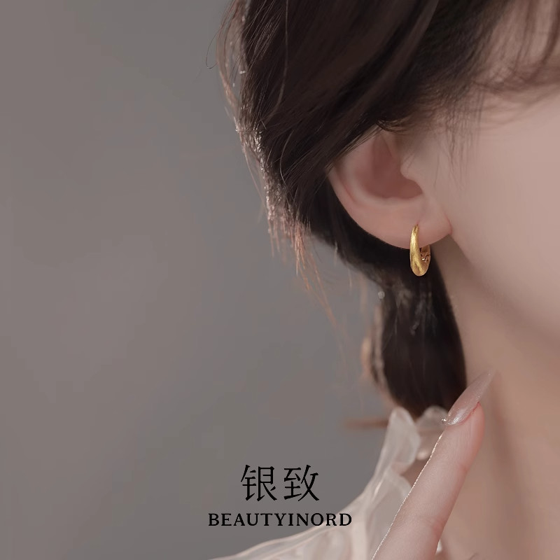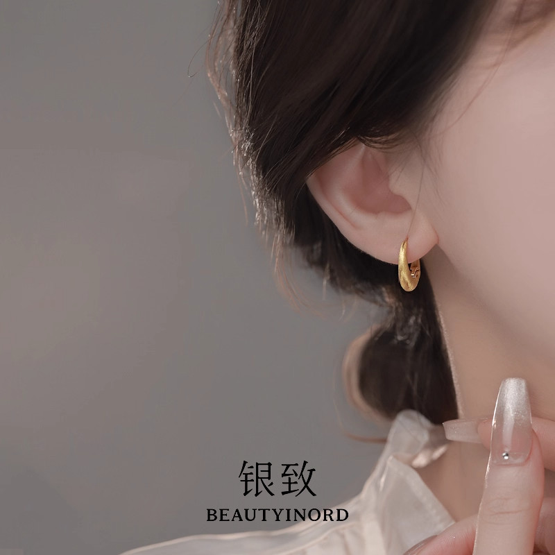 999足银拉丝素圈耳环2025新款爆款高级感轻奢气质耳饰女耳扣耳圈