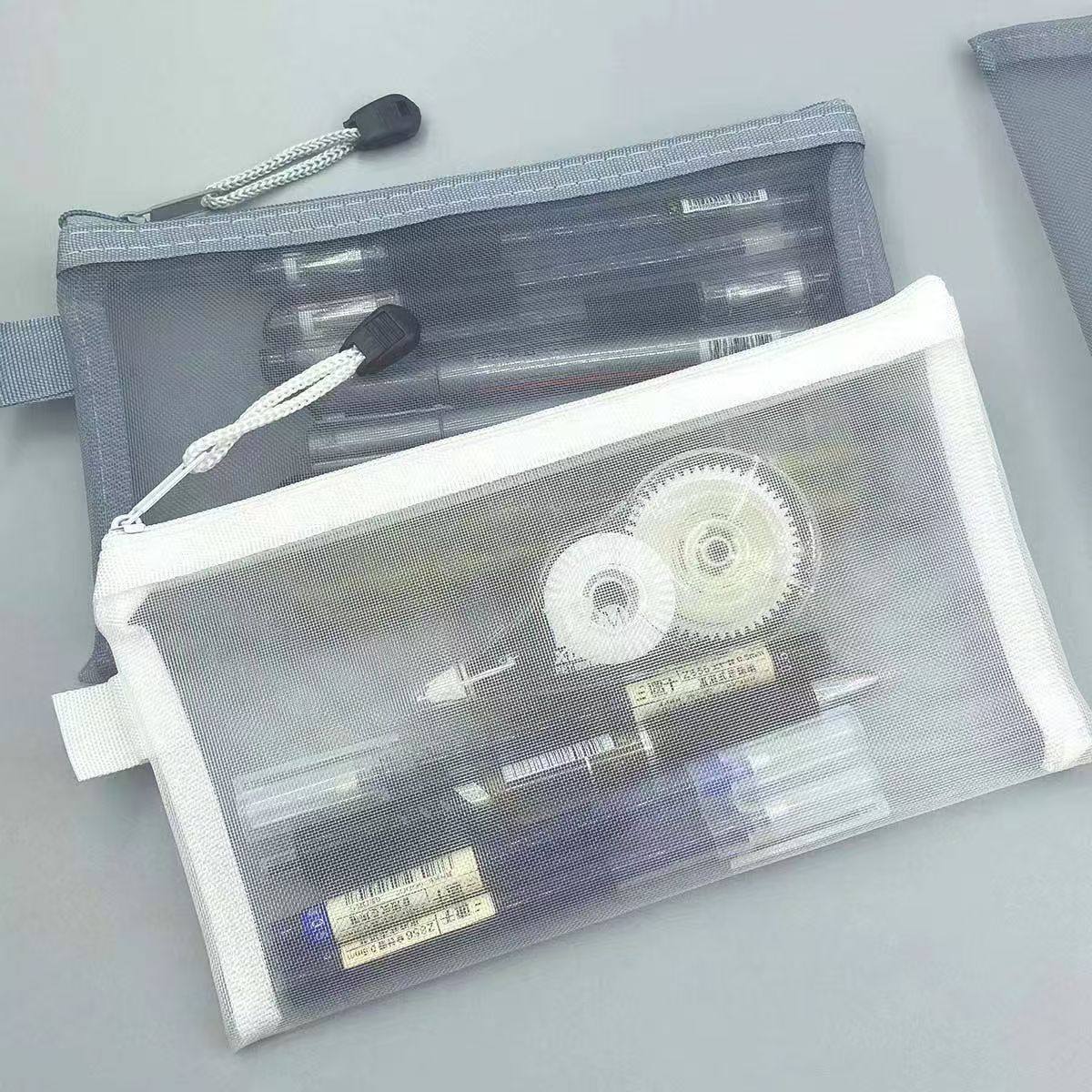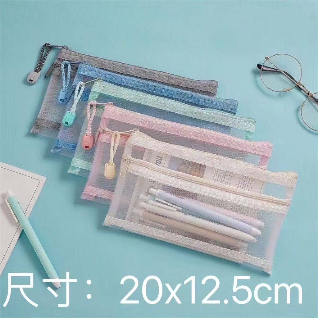 日系透明网纱笔袋收纳袋学生铅笔文具袋小众考试专用文具盒ins风