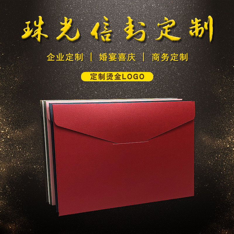 logo7号西式加厚珠光信封商务邀请函订制烫金定制精致高级感红色