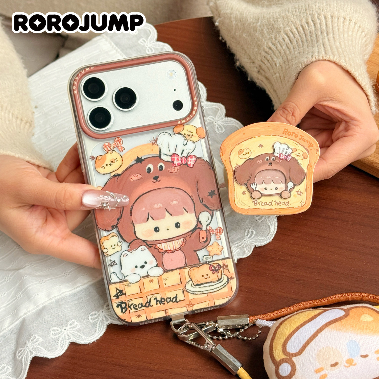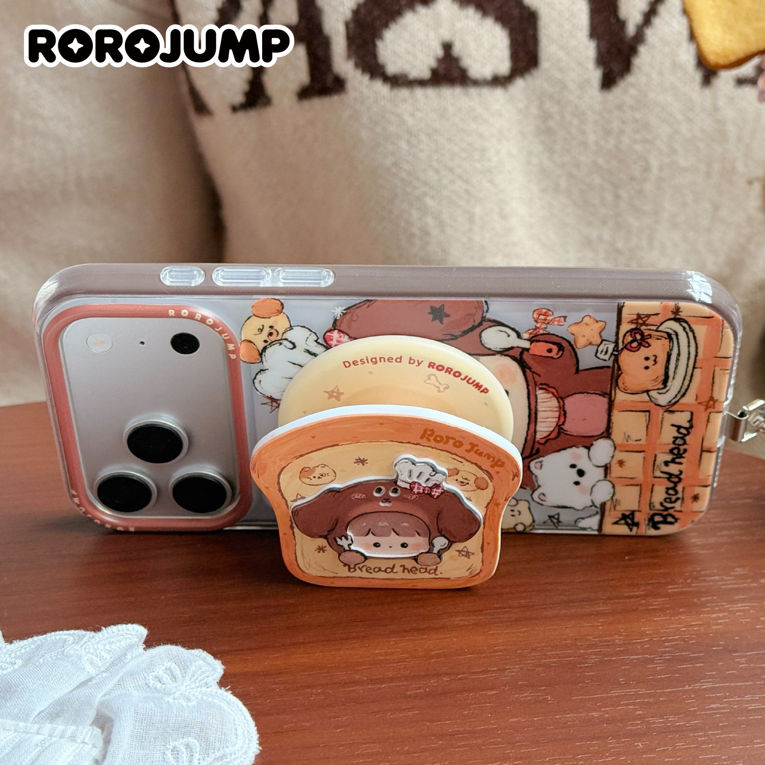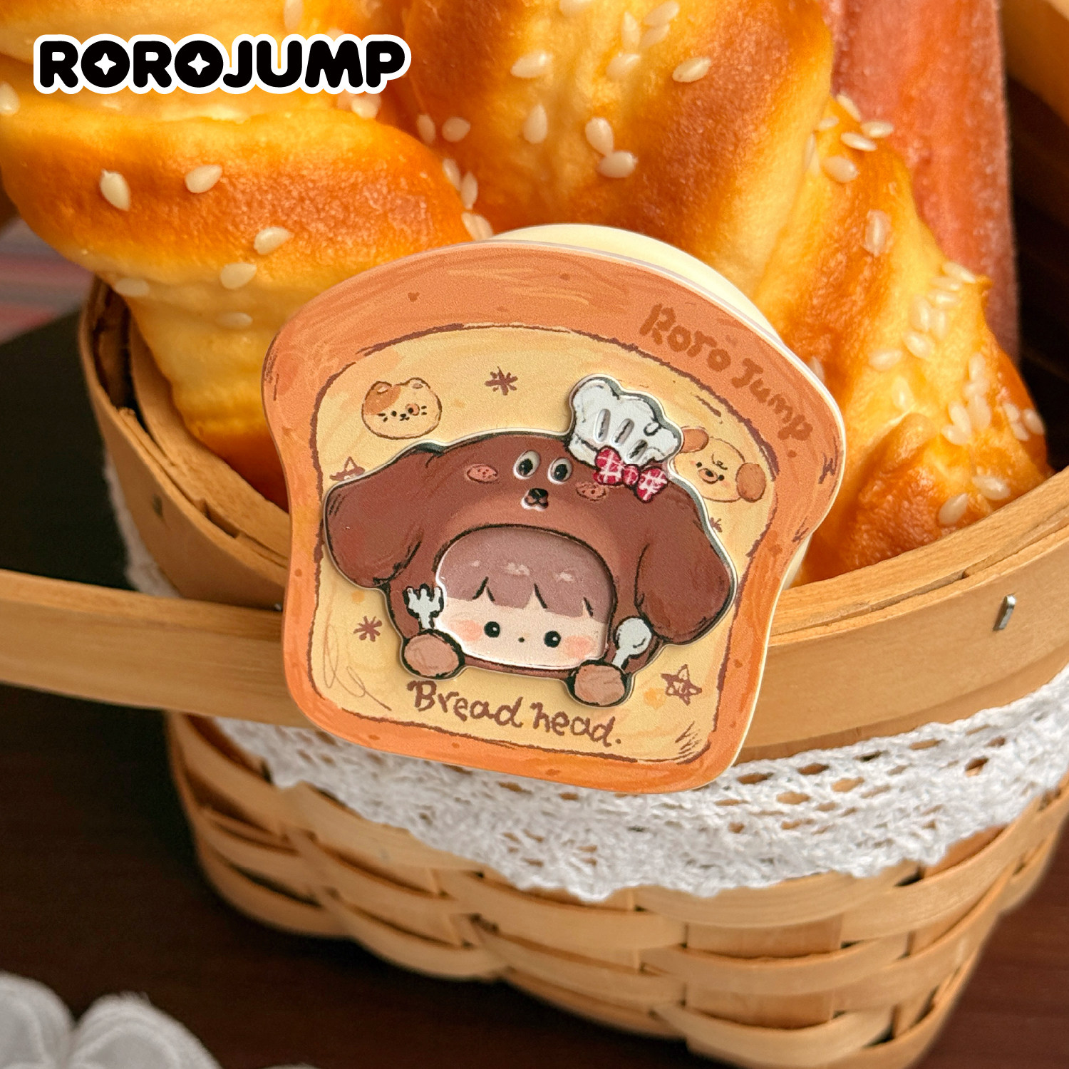 肉肉酱可爱腊肠小厨手机磁吸支架原创设计新款雕刻仿木质可旋转轮子支撑架百搭装饰桌面办公追剧手持式卡通