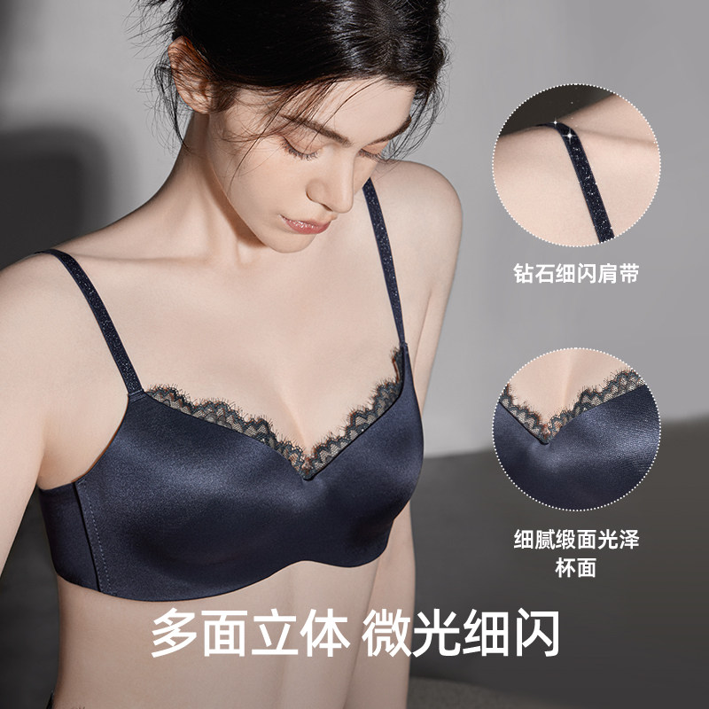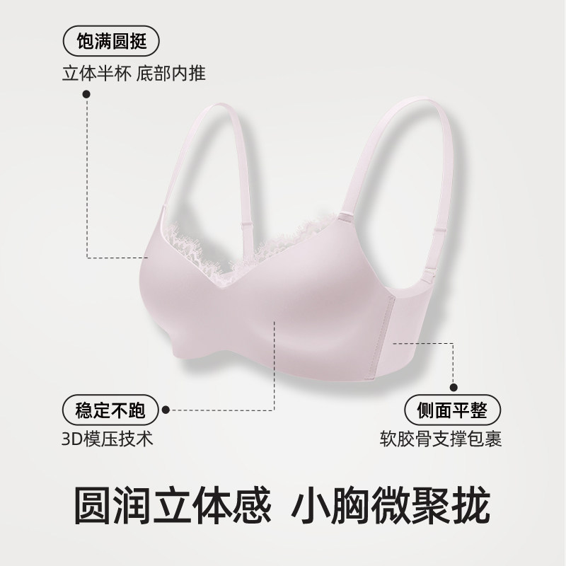 祝绪丹同款幸棉蕾丝法式无痕内衣女小胸聚拢显大美背性感文胸罩