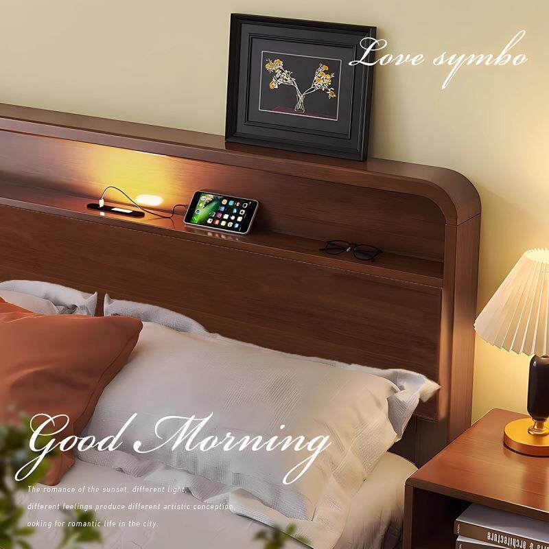 北欧实木床胡桃色现代简约气压储物收纳1.5m1.8米双人床主卧家具