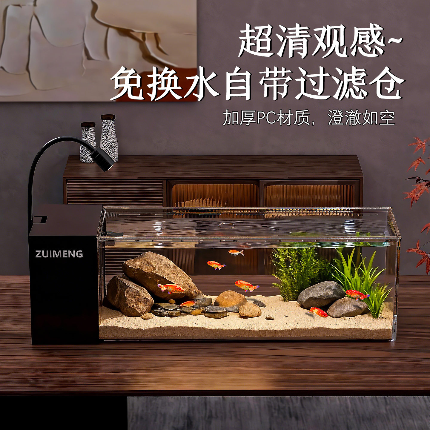 2026新款溪流缸一体式客厅侧滤鱼缸循环过滤金鱼缸防摔缸全套生态