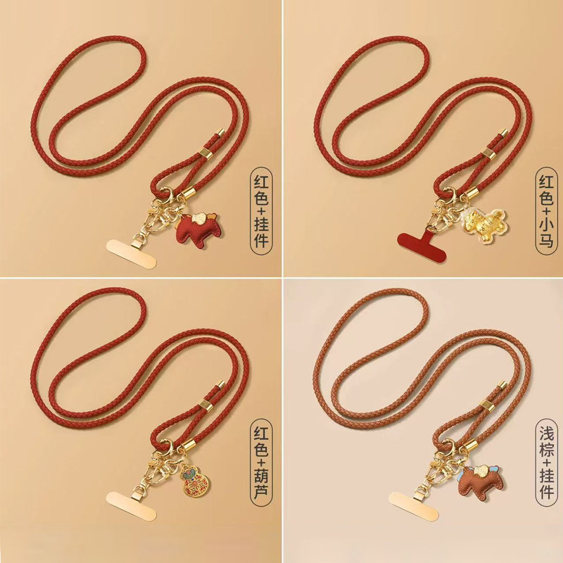 手机斜挎可背挂绳手机链女高颜值高级感链绳链条挂脖挂饰挂件夹片2025新款红色新年节日礼物马年垫片手机挂链