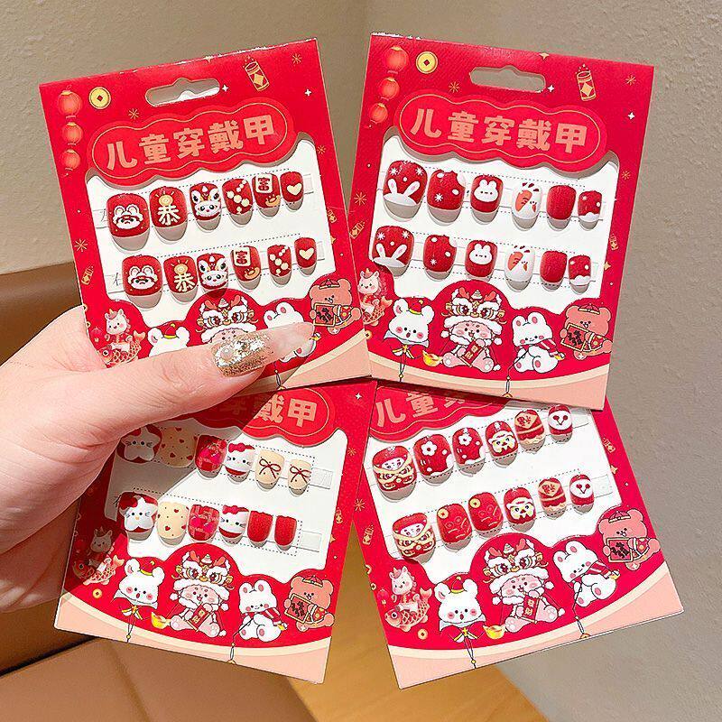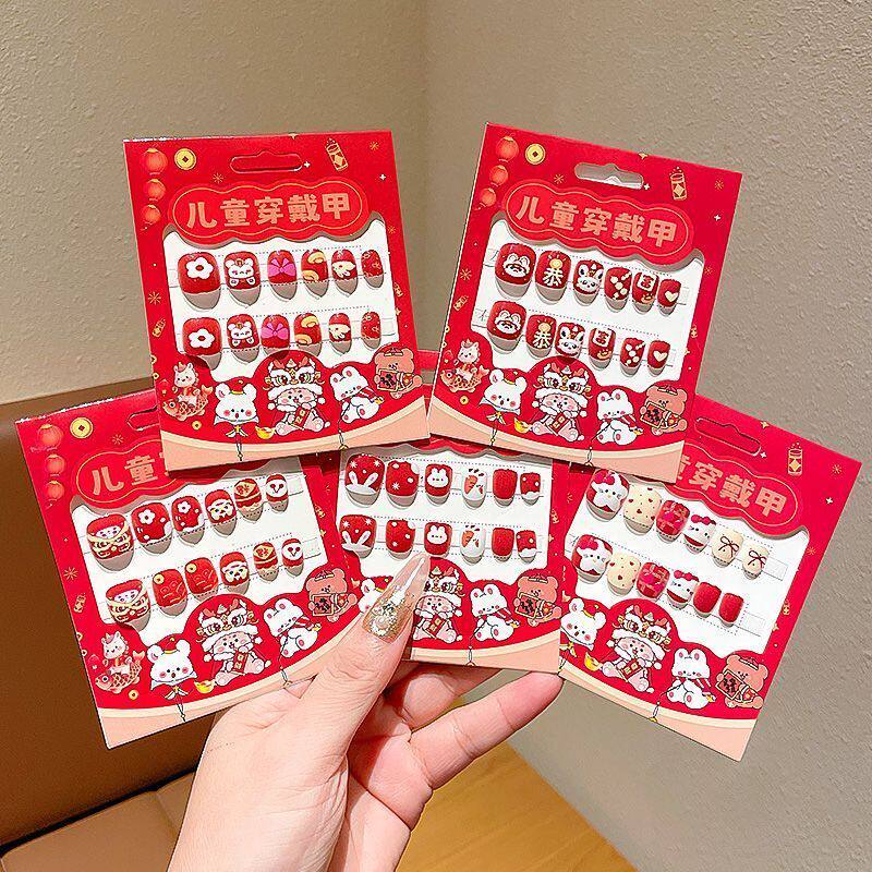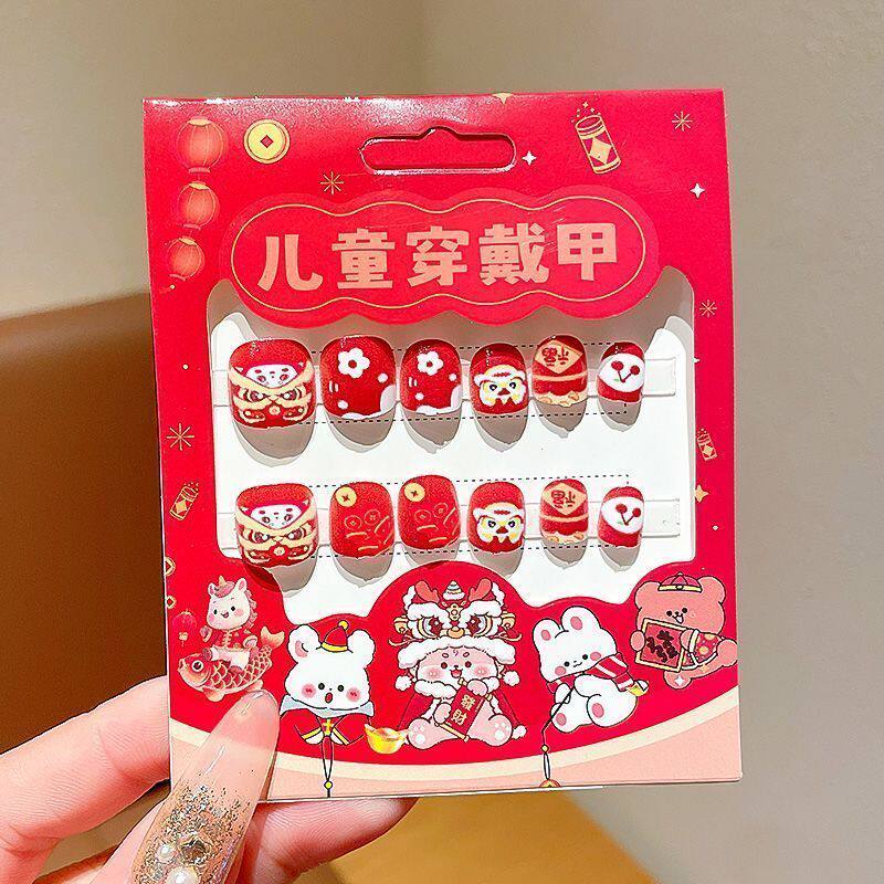 儿童美甲贴新年红色美甲女孩甜美可爱立体指甲贴小朋友穿戴甲贴纸