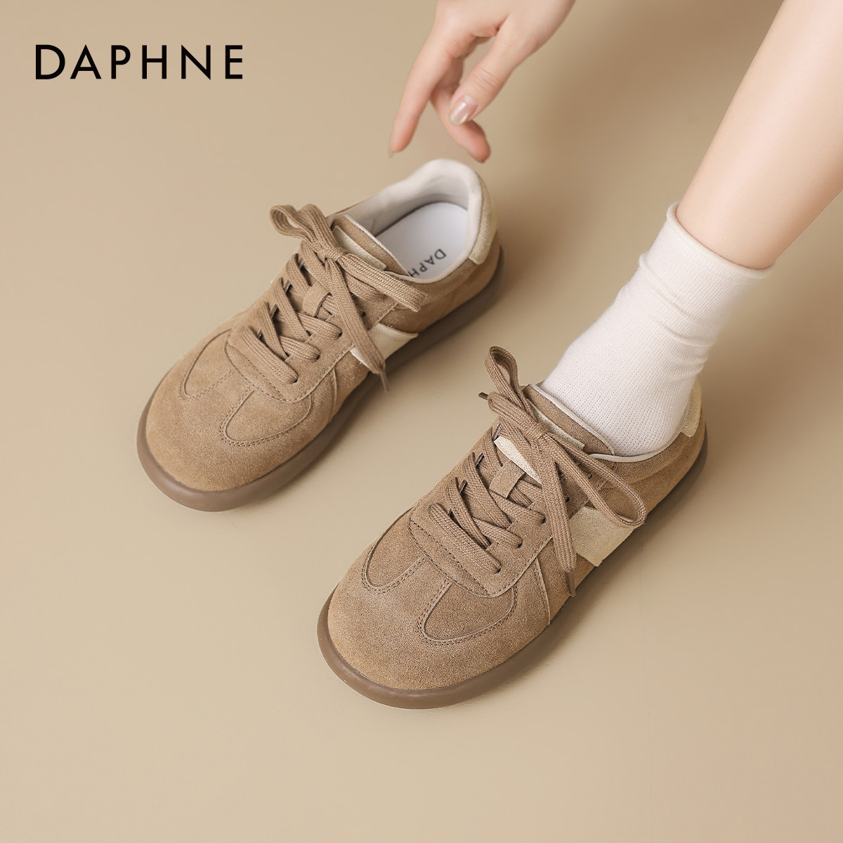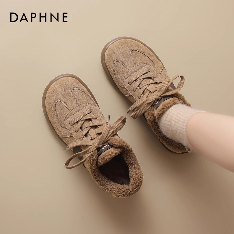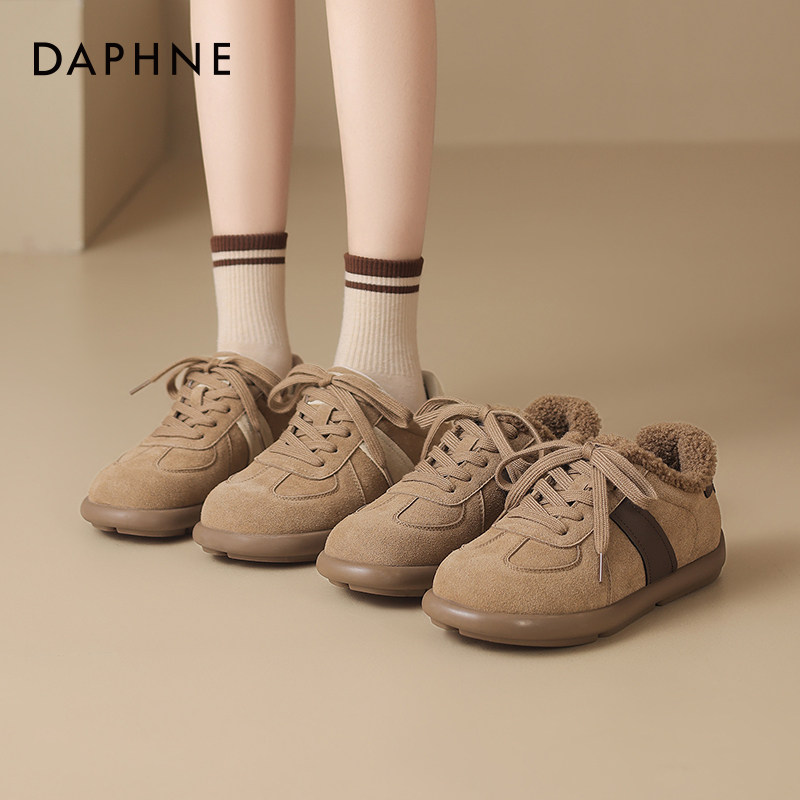 达芙妮加绒德训鞋子女2025新款休闲板鞋平底鞋秋冬保暖运动鞋女鞋