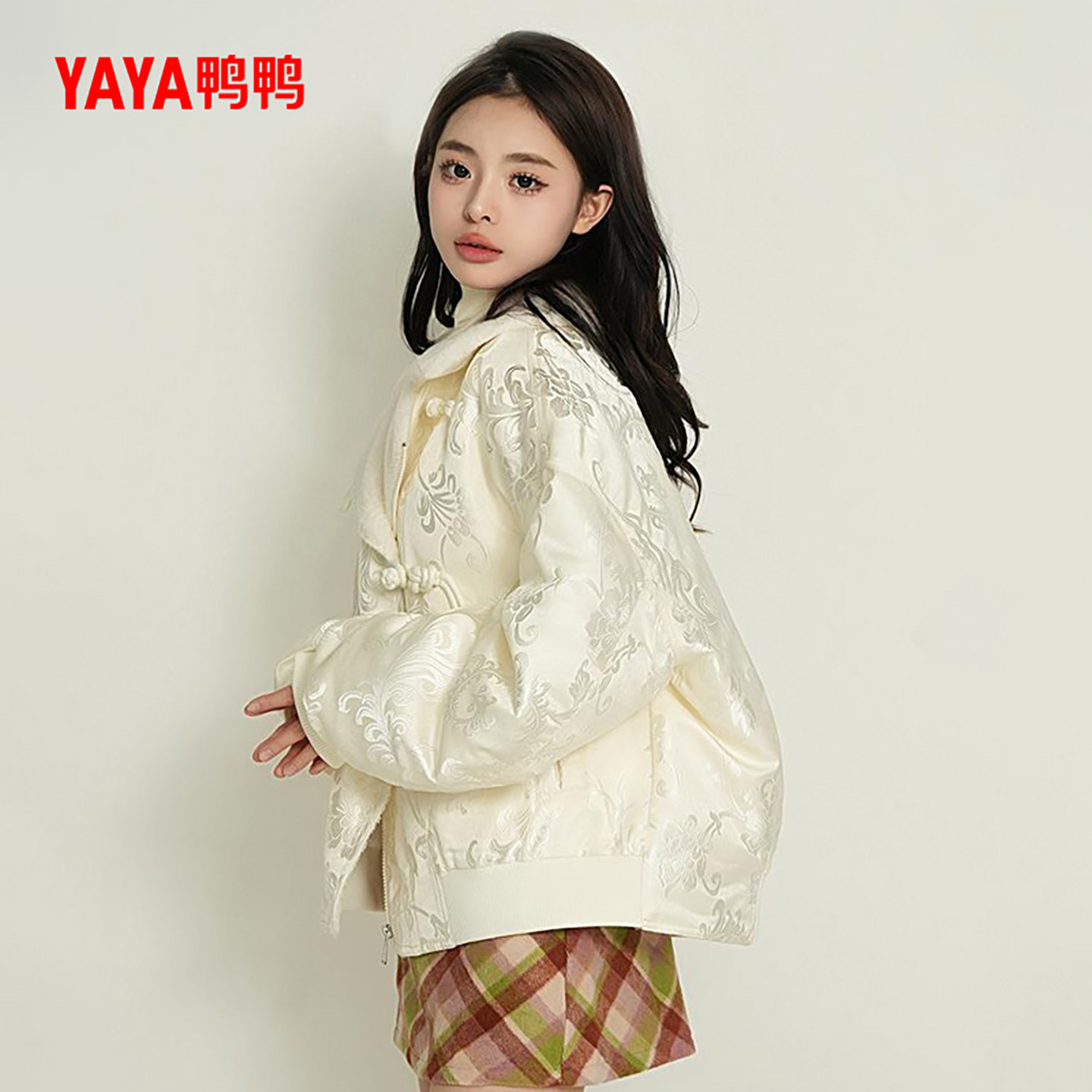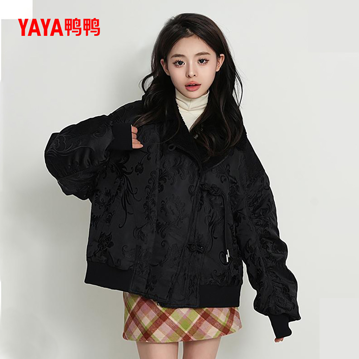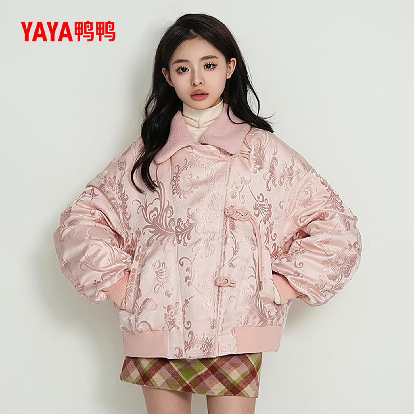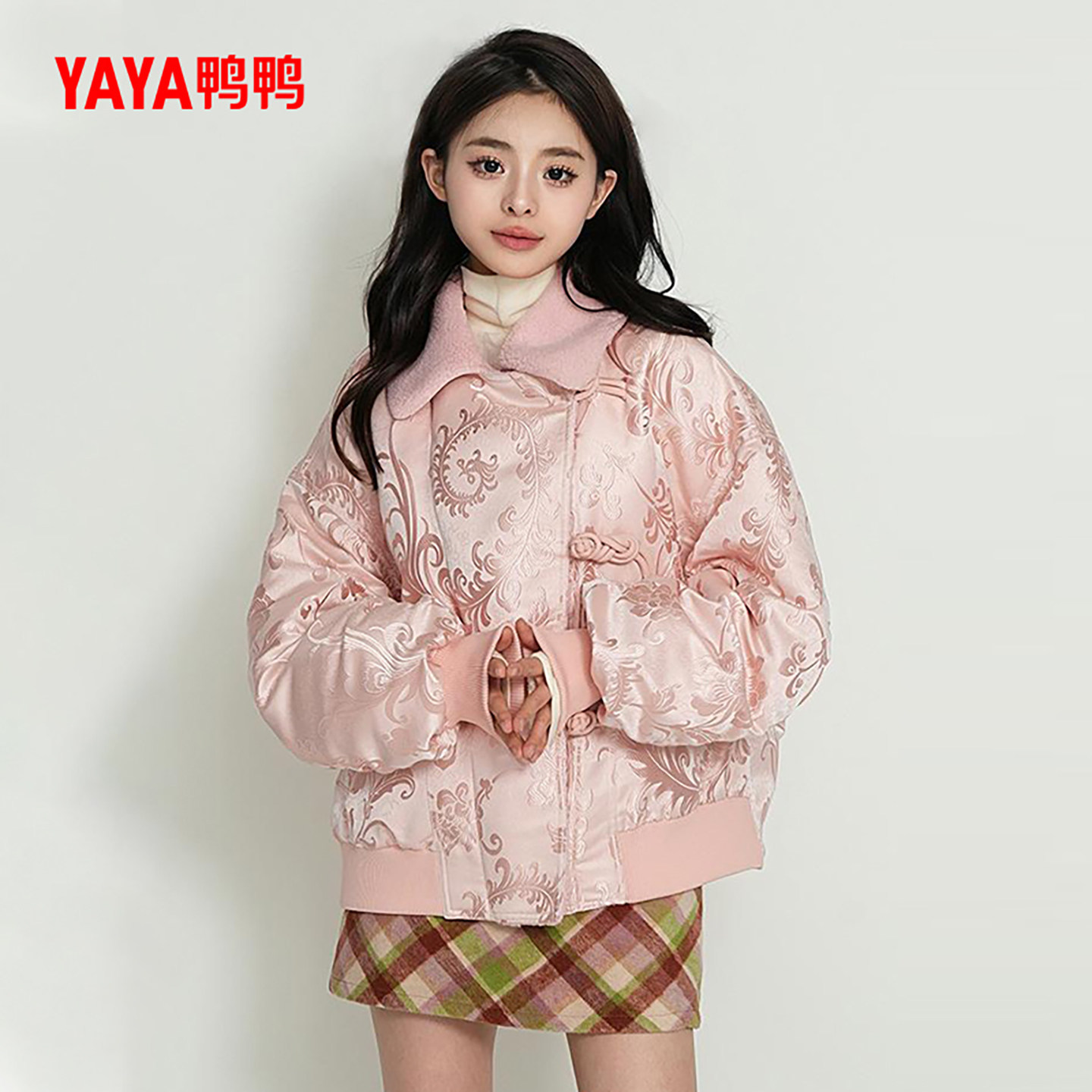 鸭鸭新款新中式短款冬季时尚休闲宽松翻毛领国风轻羽绒女J
