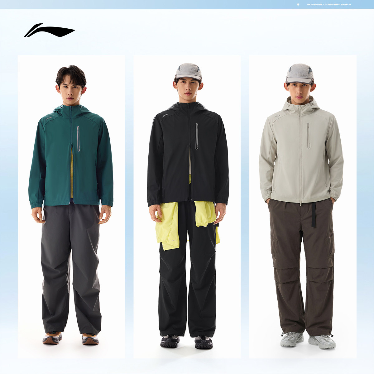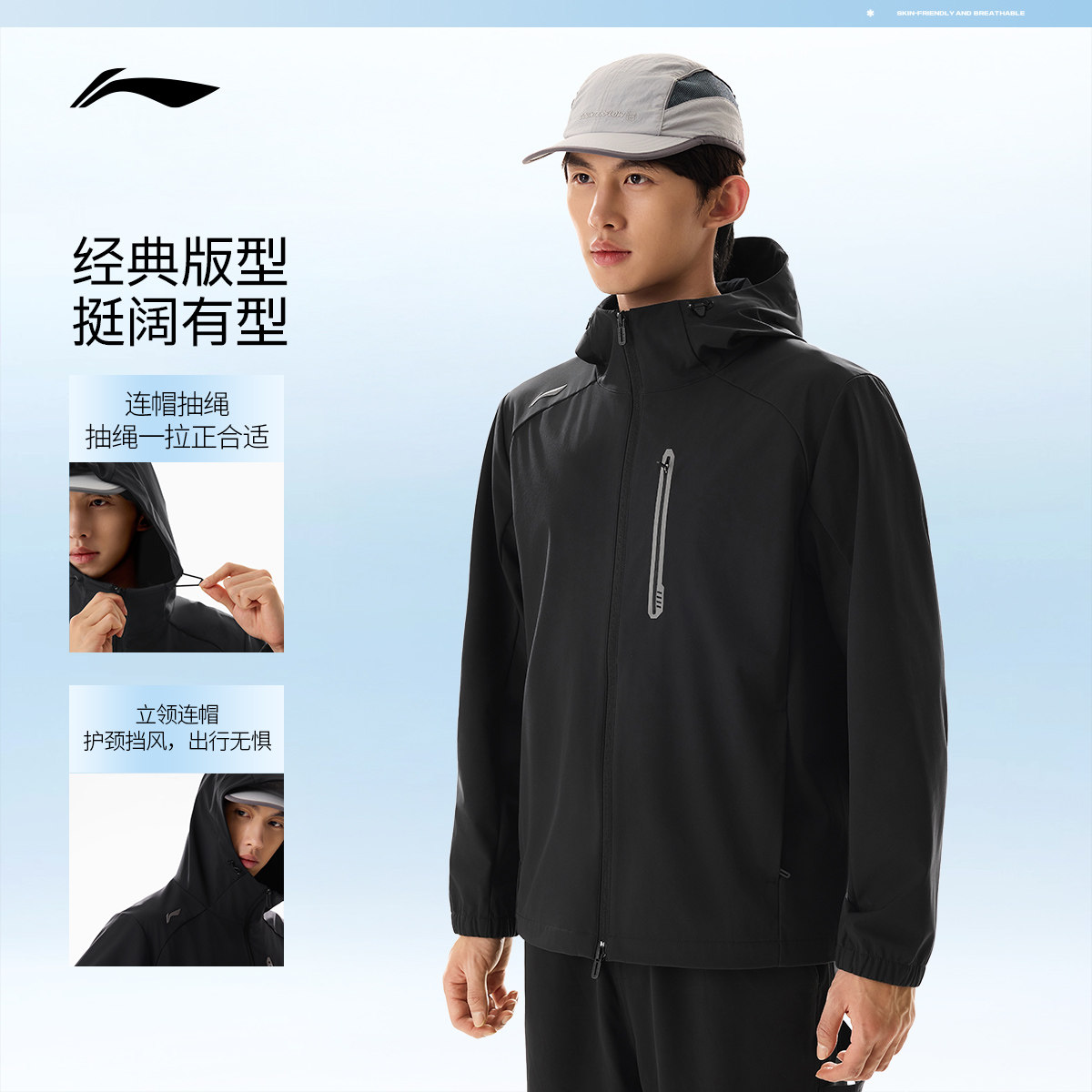 李宁外套男春季新品健身跑步长袖上衣连帽夹克防风服梭织运动风衣