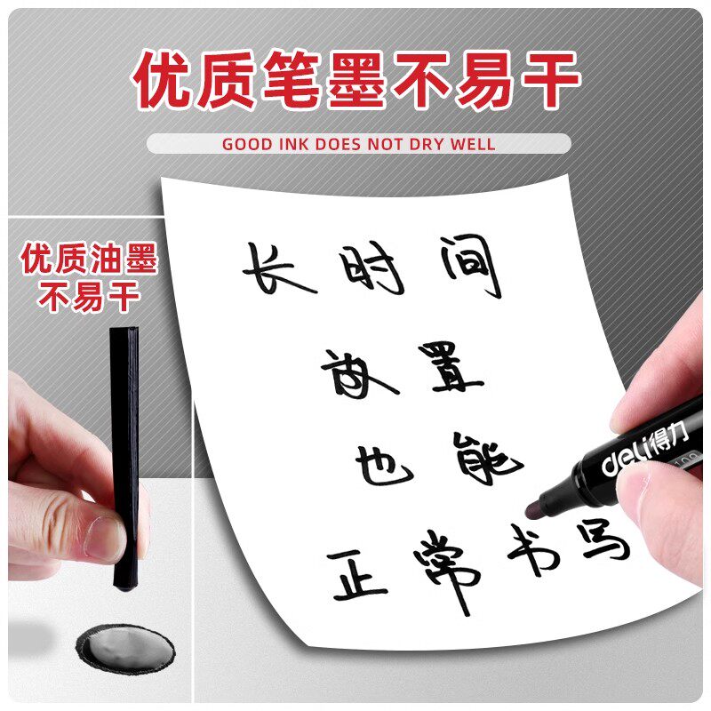 得力记号笔黑色防水防油不掉色马克笔油性记号笔大头笔粗头工地专