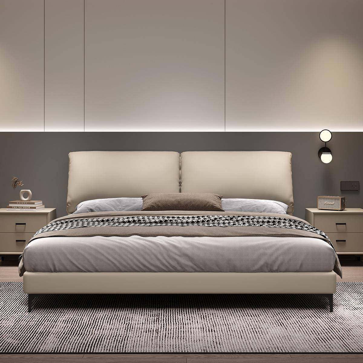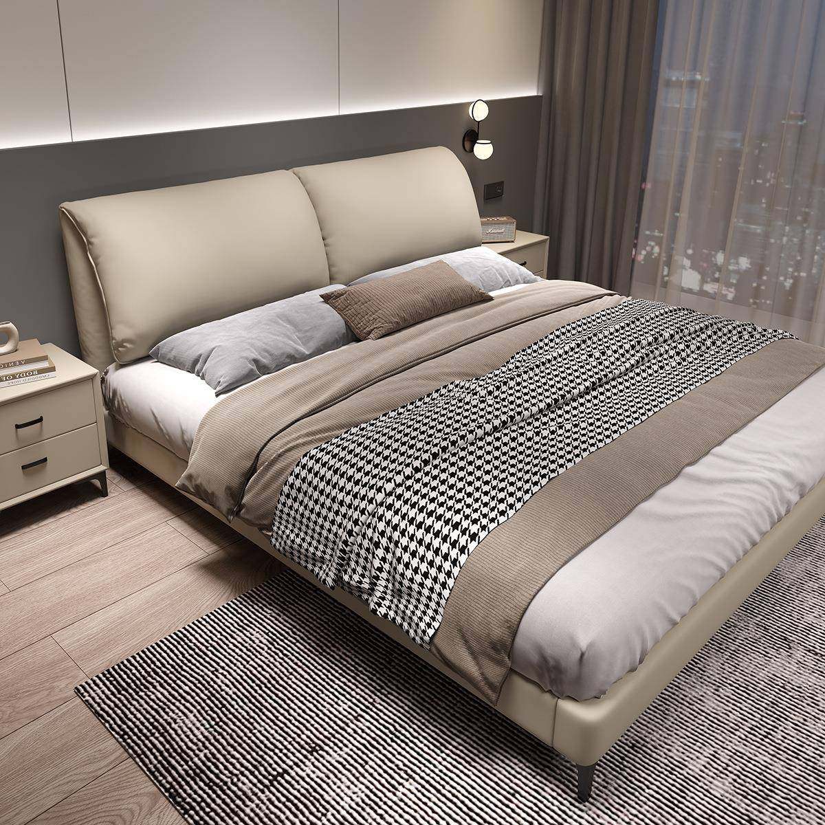 大象耳朵真皮床轻奢现代简约主卧大床双人大气意式极简婚床皮艺床