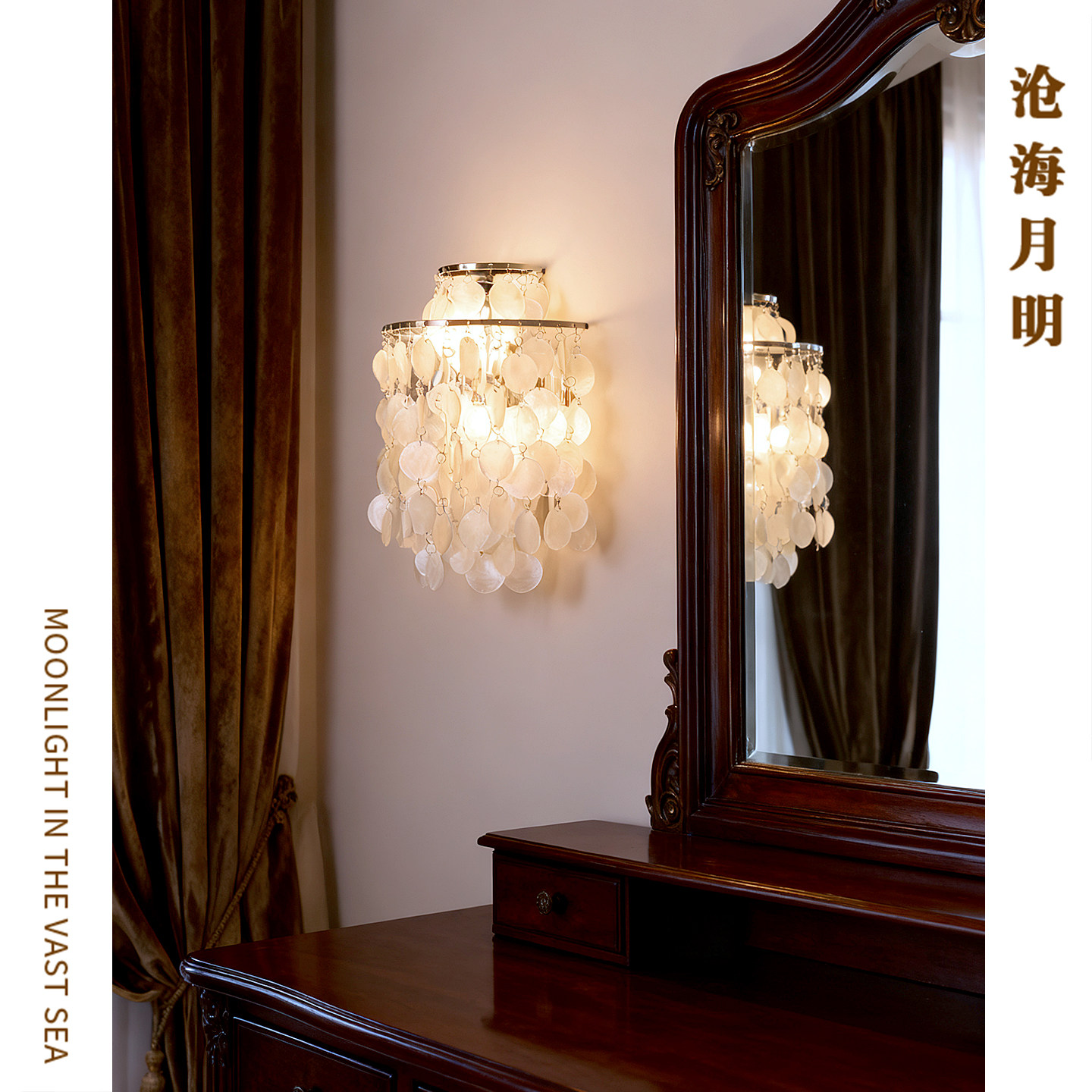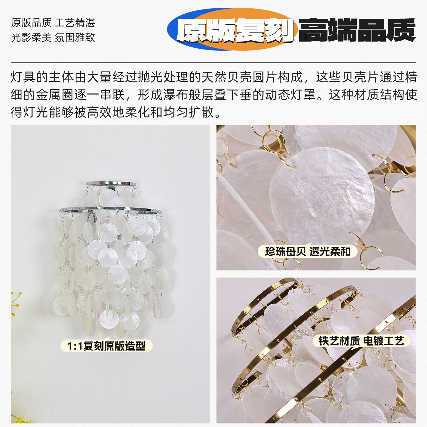 北欧法式贝壳壁灯轻奢客厅卧室书房别墅复式楼梯过道床头墙壁灯具