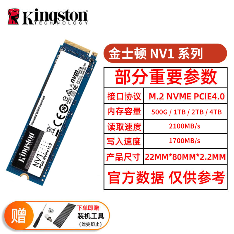 Kingston/金士顿 A2000 NV2 1T 500G M.2 NVME SSD 电脑固态硬盘