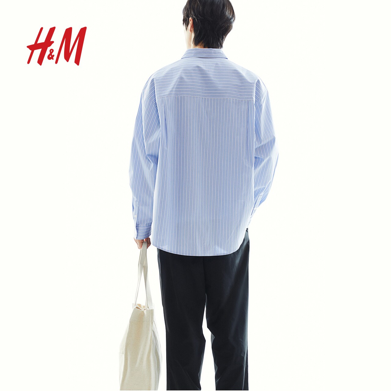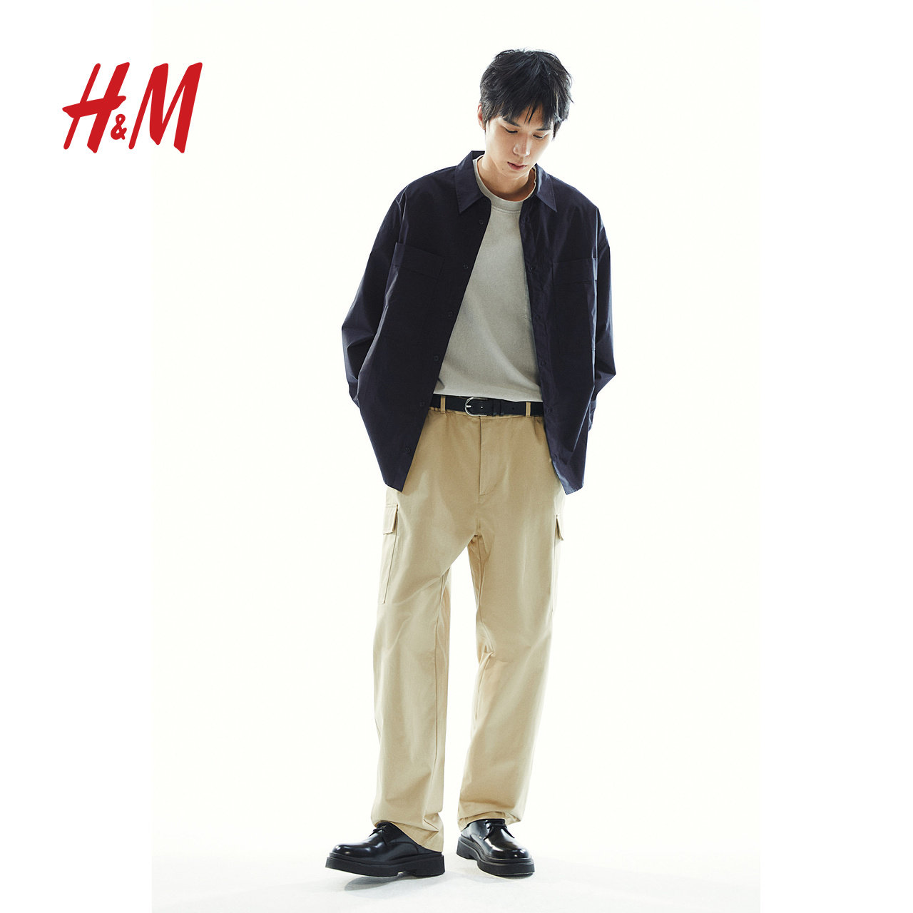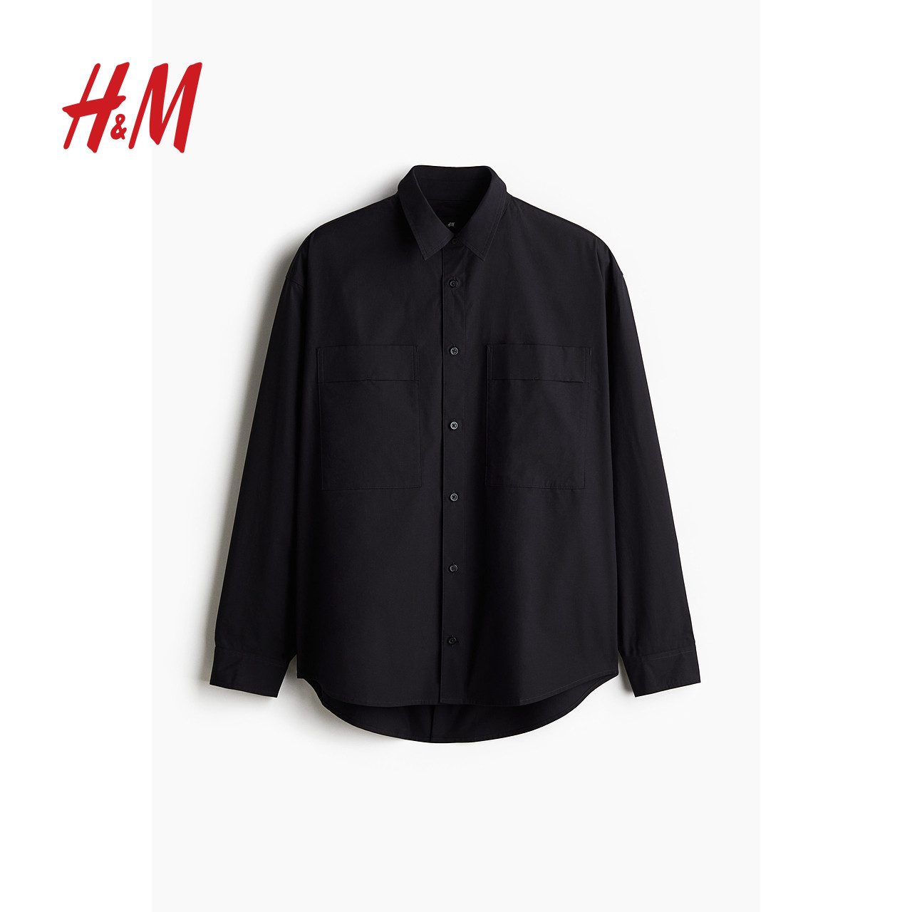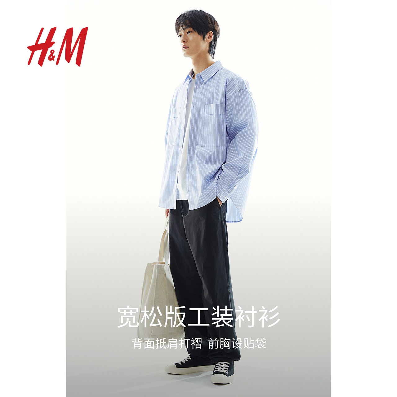 HM男装衬衫春季长袖宽松版型法式前襟工装衬衫1271715